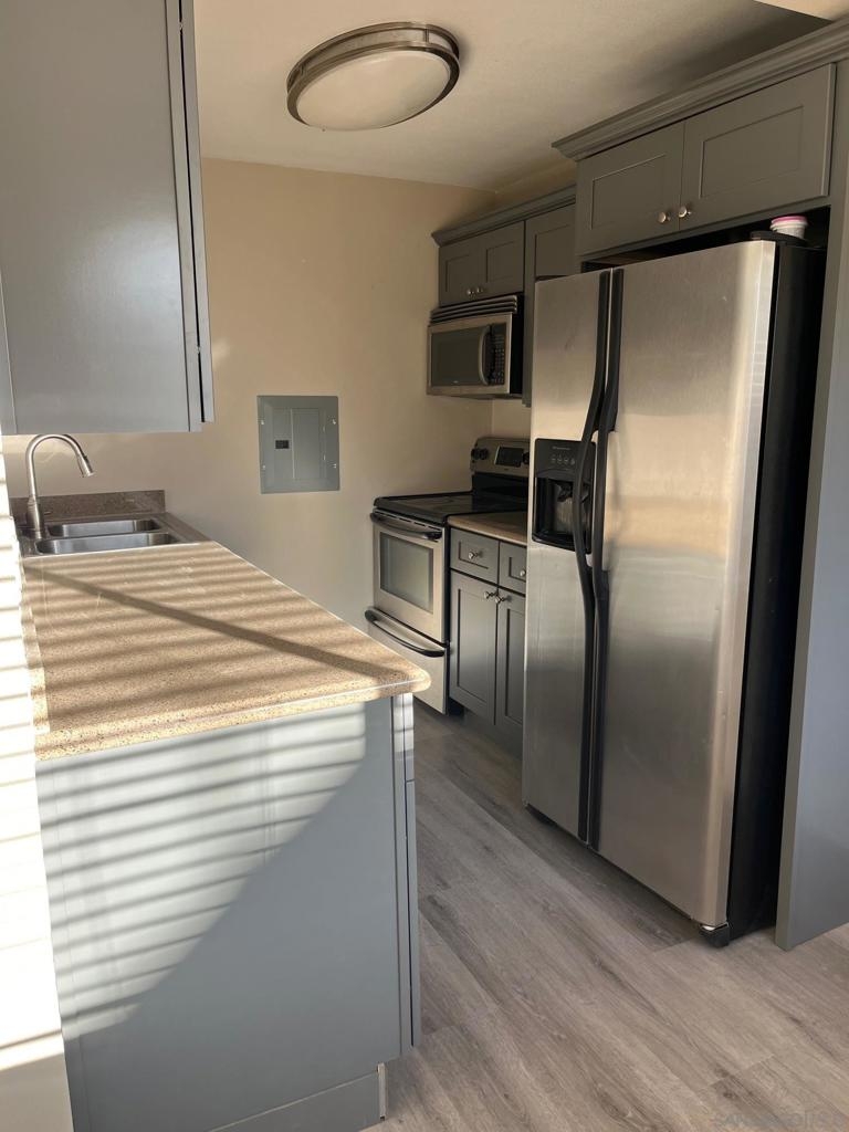 Beautiful Southwest facing corner unit in the heart of Hillcrest w/ ample natural light, large living room, and cozy fire place. Stainless steel appliances, custom blinds, closet organizers, brand new cabinets and flooring. It's been tastefully remodeled bathroom done in March 2021. One assigned secure parking space. Well maintained complex with sparkling pool and gym and LOW HOA! Perfect location with walking distance to restaurants, theater, Whole Food, Balboa Park, and only 15 mins to airport.