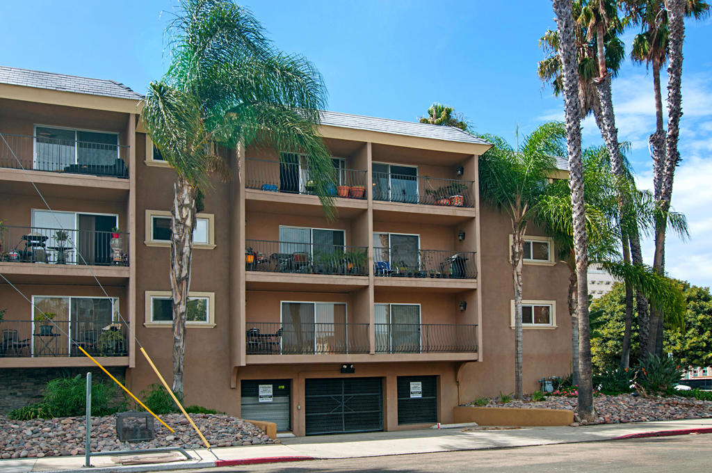 'Hillcrest Dreaming at a Price You Can Afford!' Perfect as a starter home, Hillcrest pied-a-terre or investment property, this well-maintained studio in a vintage building is priced well below most San Diego condos and comes with garage parking, low HOA fees, heated pool and gym/clubhouse. Added Value features include a generous balcony, fireplace, large closet, good kitchen storage and wood floors. Uniquely located on the top floor, the unit has no one above or below it. The deeded parking space is next to the elevator, perfect when carrying groceries and you're just across the hall from the laundry room and trash shut. The longtime owner seller has kept the place in mint condition with improvements and upgrades. Nothing to do but put your socks in the drawer. Near Uptown's traditional clubs and entertainment, Ralph's Trader Joe's, Whole Foods and dining. Near famed Balboa Park with its theaters, museums, world famous zoo, sprawling lawns and gardens. Next to Scripps' Mercy and UCSD Medical Centers. Good public transportation, quick minutes to the freeway network and short distance to Mission Valley shopping and entertainment, the airport, downtown and the beaches