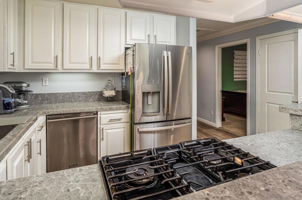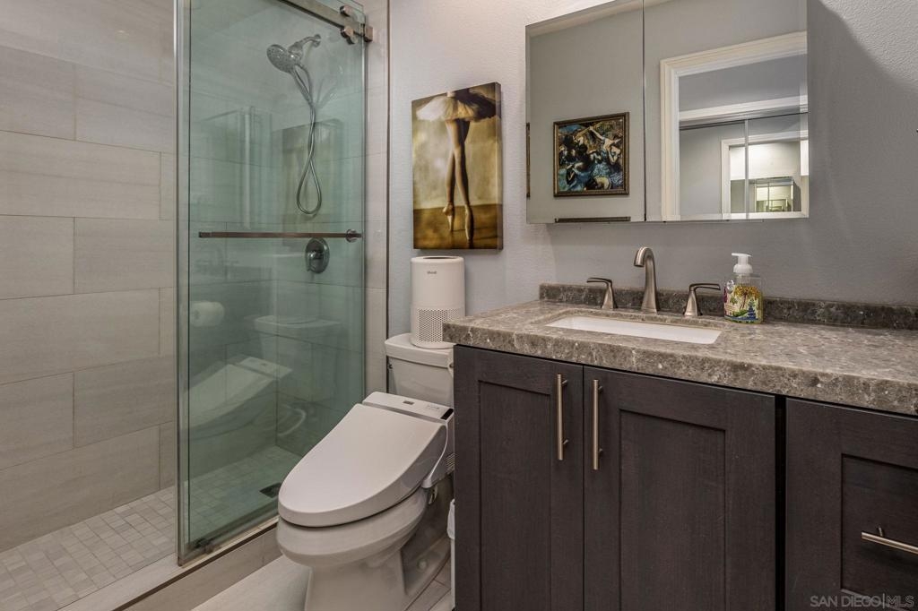First floor modern Spanish style condo in the gated Villa Portofino Complex in Hillcrest. This highly sought after and tastefully upgraded 2BR 2BA unit has one shared wall, 2 car underground parking spaces & features a front patio space. It offers convenience, comfort, style, an open layout w/ plenty of natural light, tall ceilings & a sizable laundry closet for a side by side washer/dryer. Renovations include quartz counter tops, newer hardware, painted cabinets in the kitchen & SS appliances. Laminate wood & carpet flooring, window screens/covers & shutters, door blinds, fireplace tiles, canned lighting throughout & crown molding. The hallway, bathroom floors & toilet are newer. The main bathroom & shower has been completely re-done, including the toilet w/ bidet, cabinet & floors. Easy access to shops, restaurants, public transportation, entertainment in the lively metro area & other essential services.