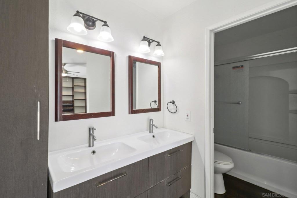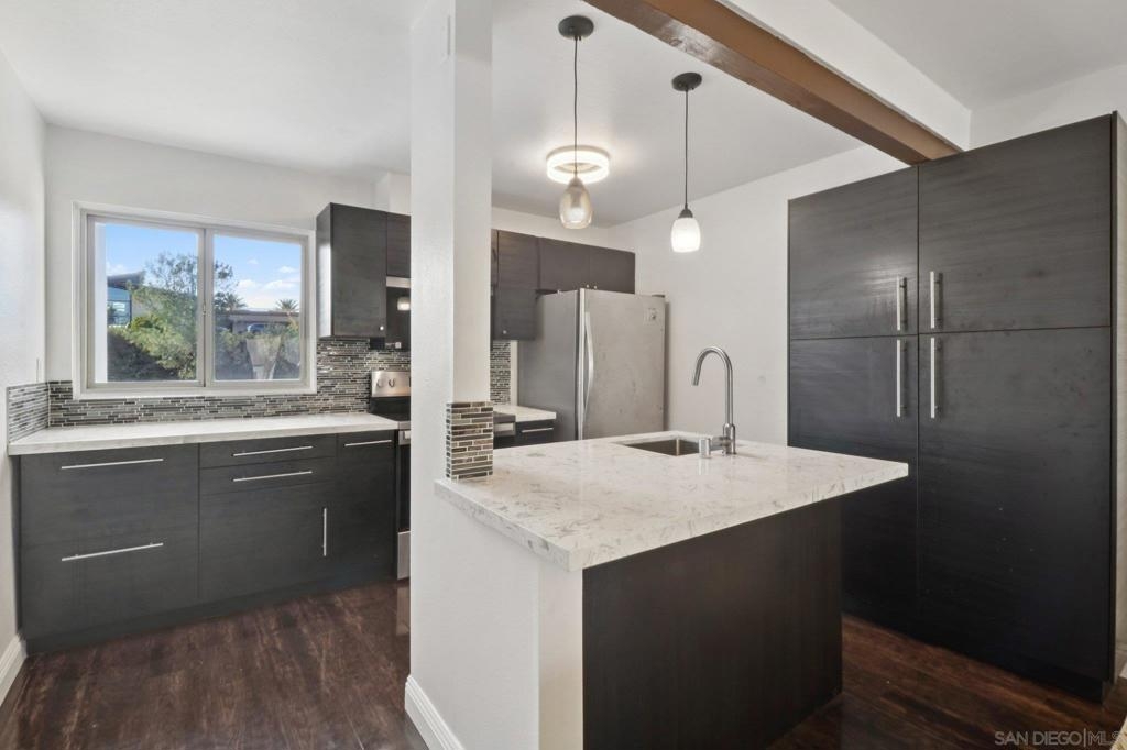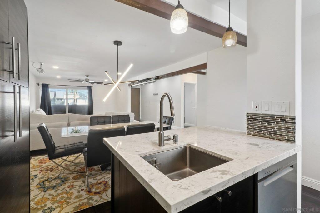 Beautifully remodeled top-floor condo in the heart of Clairemont! This move-in ready home features a stunning designer kitchen with custom cabinetry, granite countertops, stainless steel appliances, and rich engineered hardwood floors throughout. Spacious bedrooms offer ample natural light and privacy, while both bathrooms have been tastefully renovated with sleek vanities and modern finishes. With over $30,000 in upgrades, every detail has been thoughtfully crafted for comfort and style. Enjoy easy access to freeways, shopping, dining, and just minutes to the beach—ideal for convenient San Diego living.