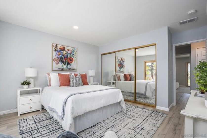 The aristocratic heritage of old Spain, blended with the spirit of early California’s Dons, echoes through time—bringing the charm of a bygone era into today’s fast-paced world. Set against this rich and romantic backdrop, Loma Riviera is a walled community designed to offer refuge from the bustle of San Diego’s business life, where comfort, convenience, and recreation come together to support the needs of active modern households. This home offers three bedrooms and two baths, including a bedroom and full bath on the first level, and is elegantly designed for both everyday living and entertaining, featuring a floating steel staircase, massive double front doors, and a tiled entry. The living room, kitchen, patio, and balcony are all generously sized to meet the demands of today’s families, while a convenient laundry room is located just off the patio. The home also includes two carports, providing two dedicated parking spaces. Loma Riviera captures the grace and beauty of a time when hospitality was a way of life, and residents enjoy a wealth of amenities including a swimming pool heated year-round, BBQs & outdoor fireplace, and a party sized clubhouse complete with a kitchen and meeting/library room. As you stroll along its quiet, winding streets, you’ll discover a thoughtfully planned community of townhomes created for gracious, carefree living.