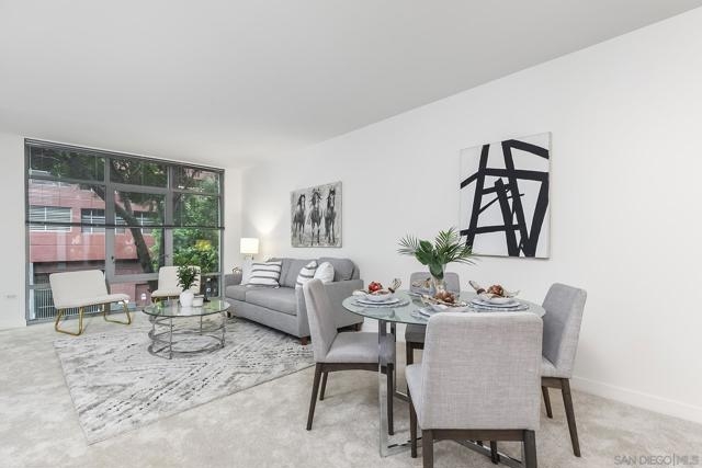 Welcome to your urban-meets-coastal escape in the heart of San Diego! This charming 766-square-foot condo, built in 2004, is tucked within the highly sought-after Acquavista community, offering a perfect balance of tranquility, comfort, and vibrant city living. Nestled in the center of Little Italy, you’ll be just steps away from buzzing cafés, iconic restaurants, artisan markets, and peaceful waterfront strolls. Inside, this inviting one-bedroom, one-bath retreat features an open layout that seamlessly connects the living, dining, and kitchen areas—excellent for entertaining or unwinding after a day of exploring the city. The charming galley-style kitchen offers a refrigerator, microwave, and dishwasher, providing everything you need for easy, efficient daily living. Residents enjoy an impressive array of community amenities, including a sparkling rooftop pool & spa, a fitness center, two welcoming lobbies, and outdoor barbecue areas perfect for gatherings. Additional conveniences—such as air conditioning and valet garage parking for one car—enhance your everyday comfort. In-unit laundry makes chores a breeze, giving you more time to enjoy Little Italy’s lively energy or take in San Diego’s stunning shoreline. Your ideal San Diego home awaits—don’t miss this incredible opportunity!