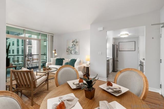 Experience the San Diego lifestyle in this beautiful Acqua Vista residence in Little Italy. Dine at your choice of stellar restaurants nearby and enjoy downtown living just 2 blocks from the Bay. The chef’s kitchen has been completely remodeled- quartz counters, honed marble backsplash, stainless-steel sink, filtered water, premium soft-close cabinets, pullout and floating shelves, and high-end appliances. South-east views over the rooftop and beautiful natural light. Other features include view patio, new W/D, custom walk-in closet, solid surface floors, designer paint, and convection range with 5-burner ceramic cooktop. Both baths are also renovated with travertine flooring, new lighting, faucets, and mirrors. Community amenities include secure entry, 24-hour security staff, heated pool and spa with views, lounge chairs and fire table on the 8th floor, BBQ grills, no-tip valet parking, EV car charging stations, fitness center, onsite Amazon Hub and a package delivery room. Acqua Vista recently underwent a complete redesign with the expert leadership of prestigious architects, DNA Design Group. Community improvements include new custom interior and exterior paint, new common area designer carpet, updated artwork, and completely reimagined lobby/entrances.
