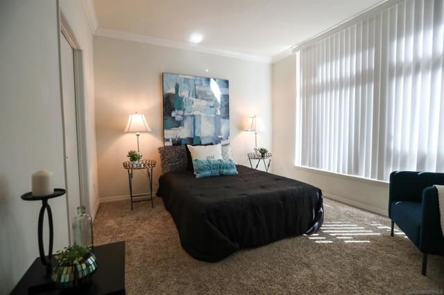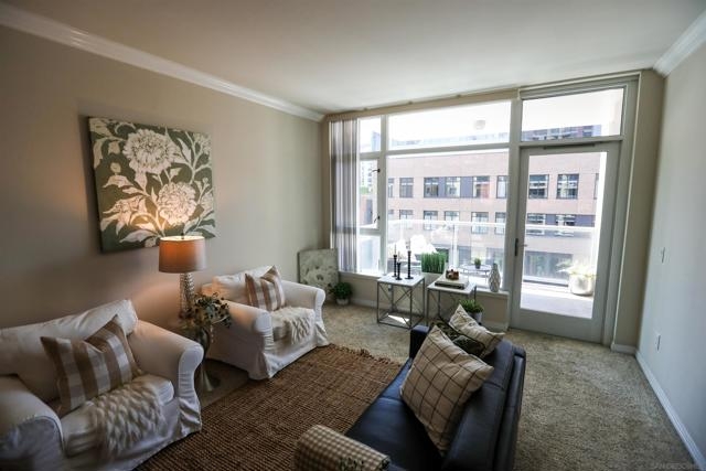 Live Steps from Petco Park in the Heart of the Gaslamp! This bright, updated condo perfectly combines downtown energy with cozy comfort. Step out onto your 12' x 8' patio and enjoy peek views of Petco Park and Park at the Park, ideal for city lovers, Padres fans, or anyone who wants the excitement of downtown right at their doorstep. Inside, the space features cherry cabinets, granite countertops, stainless steel appliances, crown molding, a full-size stacked washer/dryer, and a renovated tub/shower. Assigned underground parking on the 3rd Level fits a full-size vehicle. The secure building offers FOB access to parking, a lobby with Amazon package lockers, elevator, gym, community room, and a rooftop deck with gas BBQ overlooking Petco Park. Downtown living couldn’t be more convenient. Whether you’re exploring nearby restaurants, rooftop bars, live music venues, or taking in a downtown concert, this condo gives you the perfect home base for the ultimate city lifestyle. Walk to games, concerts, or nightlife without worrying about parking. With year-round events, restaurants, and entertainment at your fingertips, this condo puts you at the center of everything San Diego has to offer. Don’t miss your chance to own a slice of the Gaslamp lifestyle! Padre fans will love the location of this condo - If you have a ticket, no problem with Parking, quick walk to multiple entrances. Leaving the game - head out the Right Field exit, cross J to 9th and you're at your condo building. No game ticket, no worries! Grab a steak and a cold beverage and head to 14th floor where you can watch the game from the roof top BBQ deck for free.