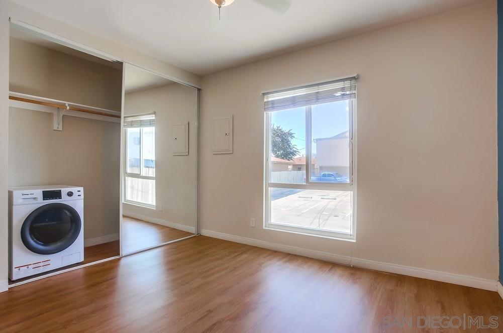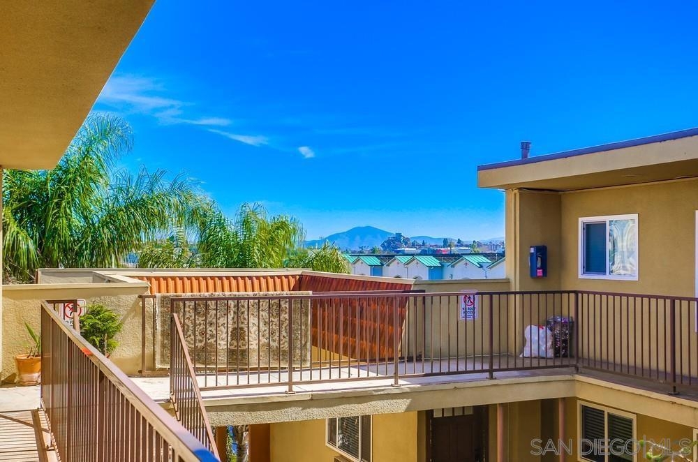 You'll adore this top-floor corner condo with just one common wall in a great walking neighborhood, just 8 minutes from SDSU. A contemporary two-bedroom, two-bathroom floor plan with windows on all four sides provides plenty of natural light and seclusion. Main bedroom offer a walk in closet and a walk in shower. This home includes air conditioning and a washer/dryer combo. Just a few steps separate the entrance door from the reserved parking space. A grocery store is directly across the street, and there are plenty of stores and restaurants nearby. This residence is in turn key condition with laminated floors throughout, granite countertops, range has vent to the outside. As the best unit in the complex, this opportunity won't last long. Short walk to Colina del Sol park w a dog park.