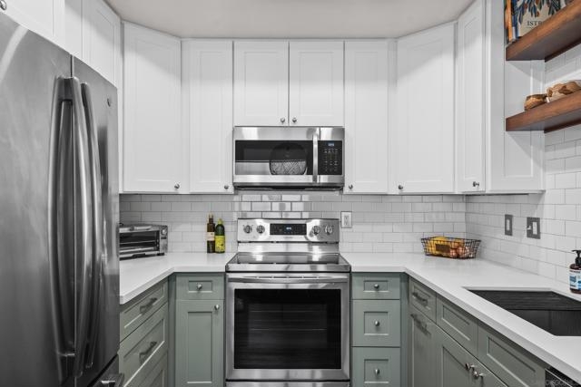 Flooded with natural light, this upper-level unit pairs thoughtful design with everyday comfort. Vaulted ceilings and high windows create an airy, open feel, while the living room fireplace adds warmth and character. The kitchen was reimagined to include an extended coffee bar and open shelving, blending style and function with stainless steel appliances and clean modern finishes. Both bathrooms have been updated, and new flooring runs throughout, tying the spaces together. Spacious bedrooms offer peaceful retreats, each with ample storage and soft natural light. Additional comforts include central HVAC, an in-unit stacked washer and dryer, a private one-car garage, and an additional driveway space. Tucked within a quiet, 7-unit complex, this home sits just steps from University Heights’ local cafés, bars, restaurants, schools and parks. A perfect mix of design, convenience, and walkable city living in one of San Diego’s most beloved neighborhoods.