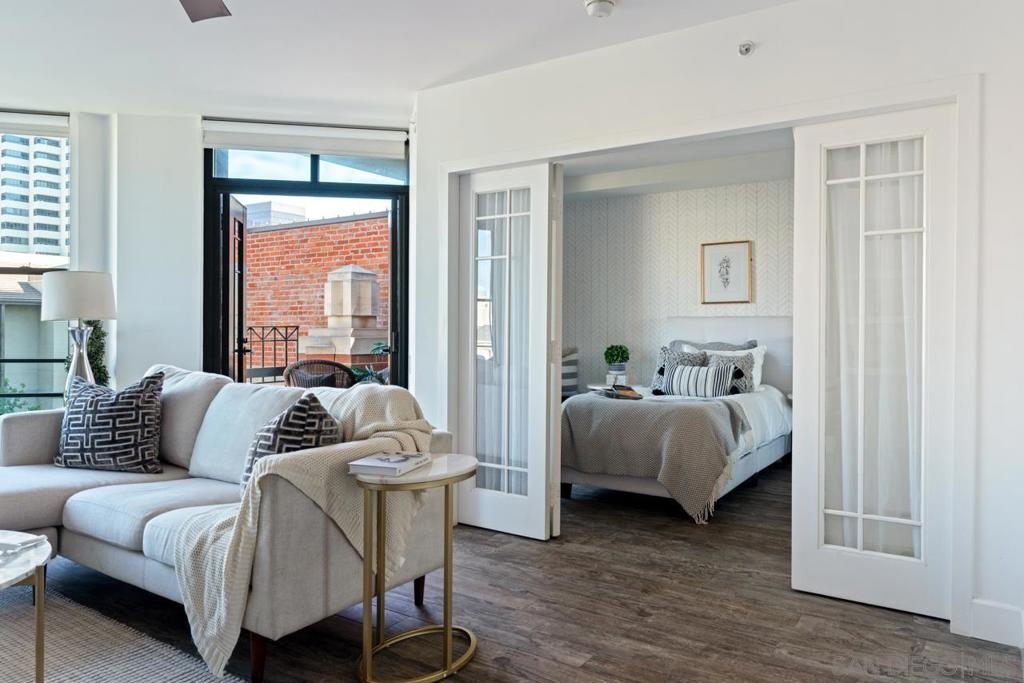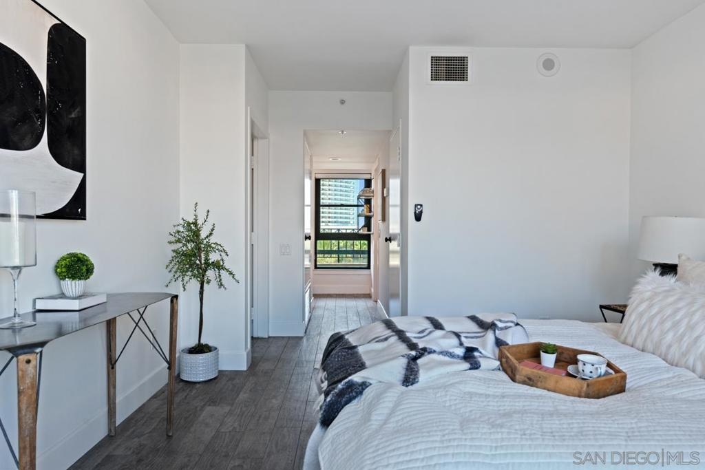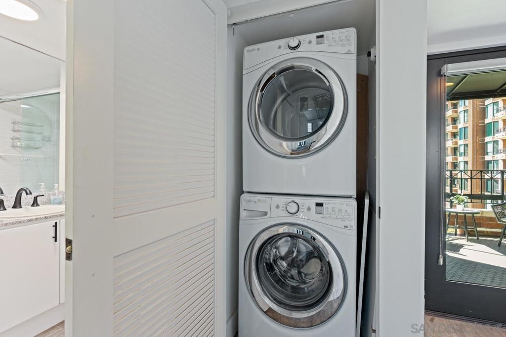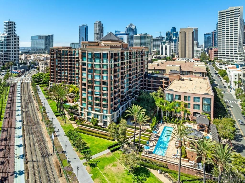 Welcome to CityFront Terrace 624 - top-floor residence in the highly sought-after Link Building! Enjoy two private outdoor seating areas, ideal for entertaining or soaking in the vibrant city views. This spacious home blends comfort, style, and functionality with its well-designed split-bedroom layout, tiled flooring throughout, stainless steel appliances, and generous closet space. CityFront Terrace offers some of the most impressive amenities in all of downtown San Diego. Perfectly positioned just moments from the city’s energy—yet set back enough to provide daily privacy and tranquility—life here feels truly elevated. At the heart of this iconic community lies the award-winning Urban Canyon, a serene garden oasis filled with lush greenery, mature oak trees, rose bushes, and a striking 90-foot waterfall that creates a peaceful retreat unlike any other. Residents enjoy resort-style living with two community pools (a lap pool and a splash pool), a jacuzzi, outdoor kitchen and BBQ area, sun deck, gazebo, fire pit, ping pong table, bicycle share program, and even an on-site ATM. The exceptional social lounge, complete with a full kitchen, bar, and cutting-edge media system, is the ideal setting for gatherings and large-scale entertaining. The community also boasts a 3,500-square-foot fitness center equipped with a full range of cardio and strength machines, an aerobics room, and men’s and women’s locker rooms.