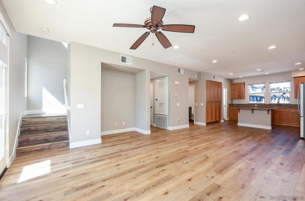 Welcome to this beautifully maintained tri-level townhome in the desirable Bay Park community of Clairemont. Built in 2008, this move-in ready residence offers a bright and airy floor plan with soaring ceilings and abundant natural light throughout. Thoughtfully upgraded, the home features stylish laminate wood flooring, recessed lighting, and modern finishes that create a comfortable yet sophisticated living environment. The spacious kitchen is designed for both everyday living and entertaining, showcasing granite countertops, generous cabinetry, a breakfast bar, and a seamless connection to the main living areas. The open layout flows effortlessly to a private balcony—perfect for enjoying fresh coastal breezes or relaxing at the end of the day. Recent upgrades include a new 2025 garage door opener and hardware, along with a new dishwasher and oven, adding both convenience and value. Additional highlights include a tankless water heater, ceiling fans, a dedicated laundry area, and a direct-access two-car garage. Residents enjoy access to resort-style community amenities including a pool and spa. Ideally situated in central San Diego, the property offers convenient access to Mission Bay, beaches, major freeways, shopping, dining, and outdoor recreation—making it an exceptional opportunity to enjoy the best of coastal urban living.