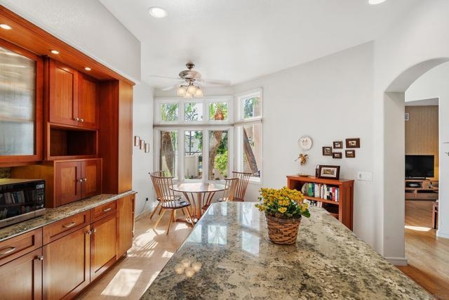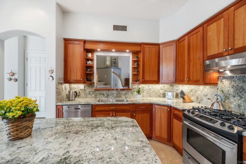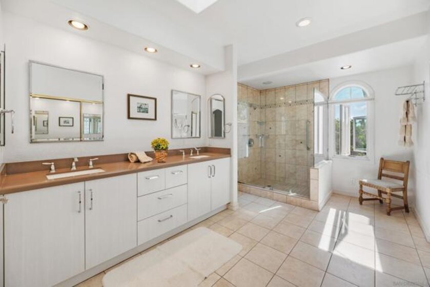 Beautifully upgraded home in gated Casabella! Stunning, well-maintained home featuring a custom-built kitchen with granite counters and a center island, high ceilings, and 3 fireplaces. Spacious primary suite with large walk-in closet and retreat (4th bedroom option—see floorplan). Rare first-floor full bath with an optional first-floor bedroom (with conversion). Upstairs laundry, generous room sizes, and an open, end location with no homes in front. Close to guest parking and community pool/spa. Nestled in the sought-after Renaissance La Jolla community, with its ultra-convenient location and charming European village atmosphere. Stroll along lushly landscaped greenbelts, complete with serene water features, to nearby shops and restaurants. Just down the street, a 25-acre park offers sports fields, a library, dog parks, pickleball courts, and a community recreation center. The acclaimed Westfield Shopping Center is easily accessed via the park across Towne Centre Dr. It provides a premier destination for dining, shopping, and entertainment—with upscale restaurants, a movie theater, boutiques, and gyms. Easy freeway access. There is a potential of up to 5 bedrooms—floor plan in photos. Natural light floods the spacious interior of this elegant Casabella home, streaming through wood-cased windows and French doors, accentuating its beautiful architectural details.. The primary retreat is an optional bedroom (with conversion- see floorplan in photos). There is a potential of up to 5 bedrooms with a bedroom and full bath on the first level.—floorplan in photos.