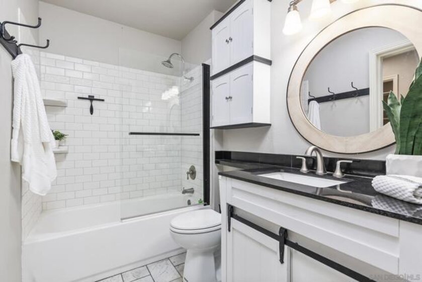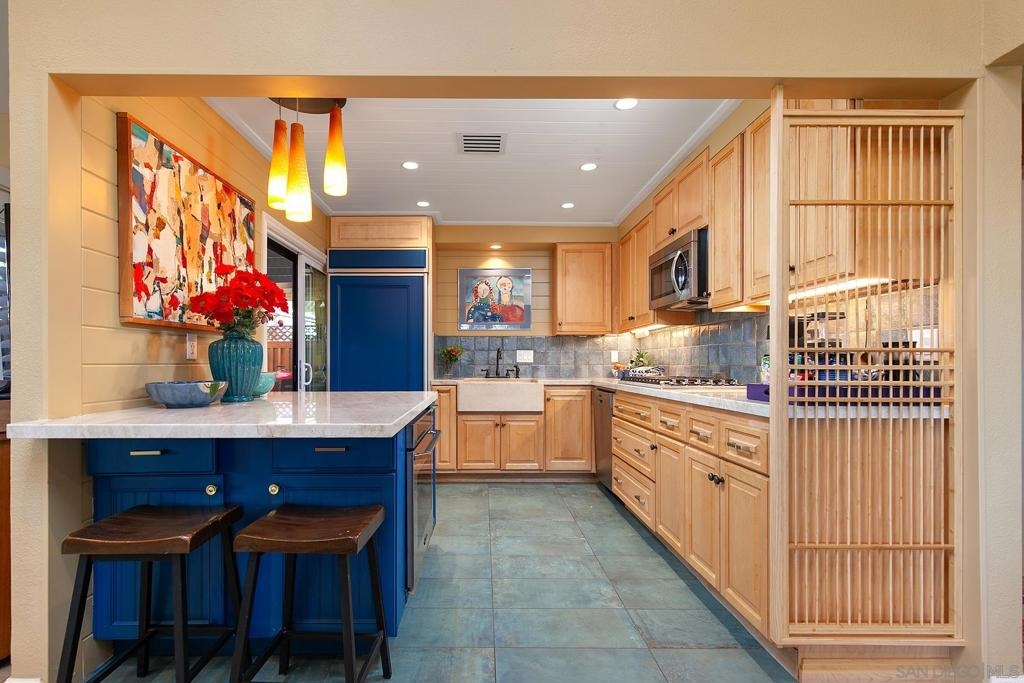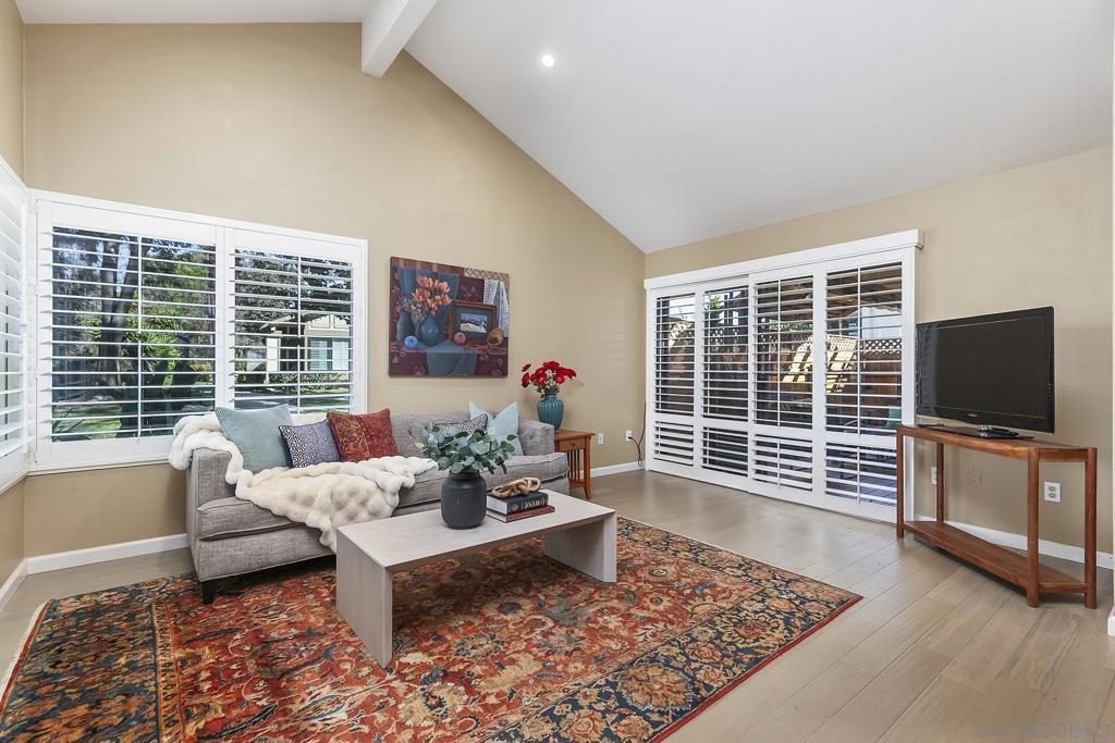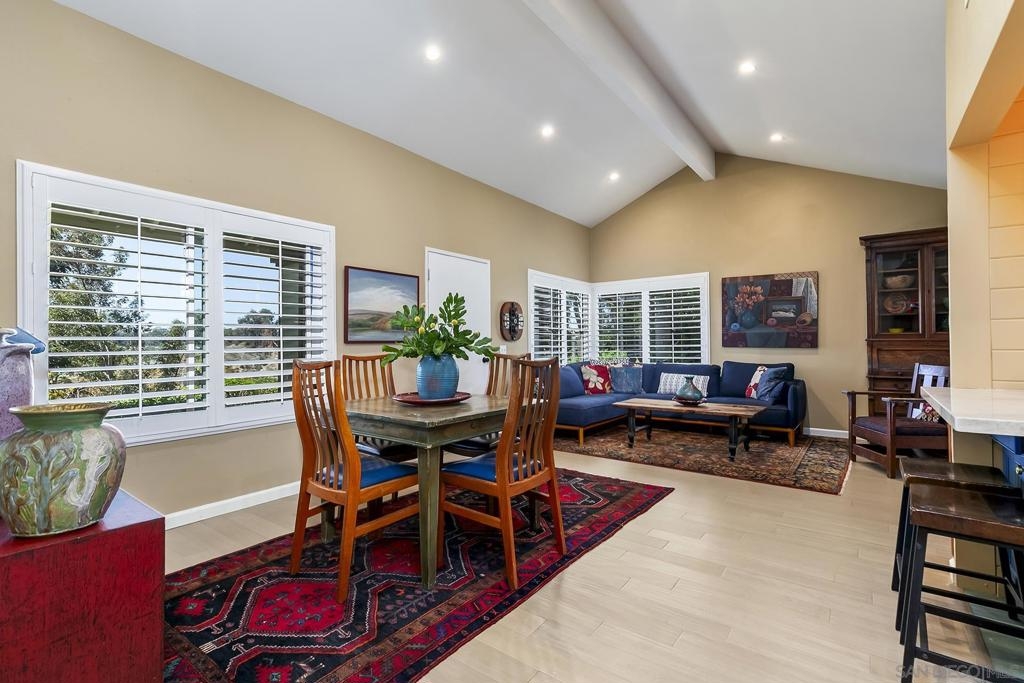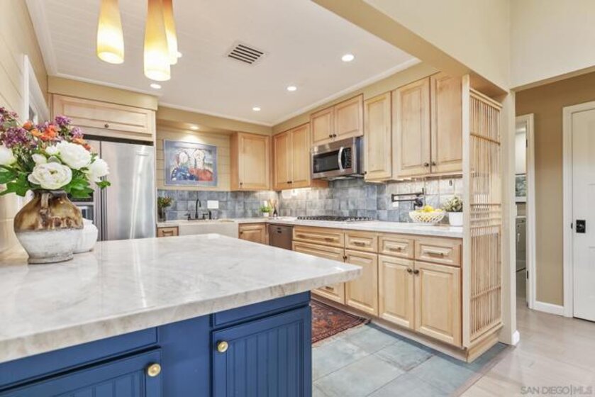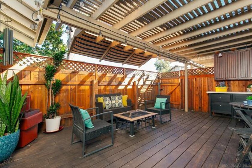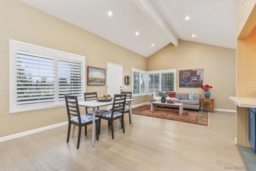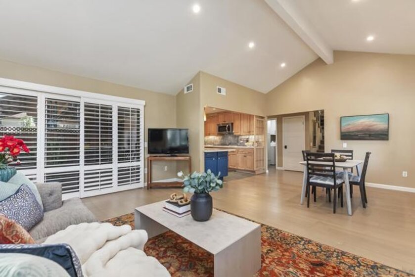 Conveniently located for commuters, this beautifully remodeled 3 bedroom, 2 bath end-unit townhome. Primary on the main level.Highly sought-after Villa Monterey community offers both accessibility & serenity. The surprisingly quiet interior benefits from upgraded dual-pane windows that minimize outside noise and create a peaceful retreat. Beautiful canyon views are right outside your windows. The custom patio deck is in a category of its own made from environmentally friendly engineered bamboo. The living area, kitchen, and primary bedroom each open through plantation shutters which are throughout the home. Step inside to discover bright, cheerful spaces ready for your personal touch. The open-concept floor plan, 36-inch wide doorway to the first-floor primary suite and bathroom, and spacious layout ensure easy accessibility throughout. The custom kitchen is a standout, featuring natural stone counters, updated lighting, and premium appliances: Viking gas cooktop, Dacor electric oven, Bosch dishwasher, travertine farm sink, built-in KitchenAid refrigerator, microwave, and pot filler — all framed by elegant Taj Mahal quartzite countertops. The primary suite offers vaulted ceilings, a skylight for stargazing, and a walk-in closet. Both bathrooms have been fully remodeled with marble, granite, subway tile, and custom glass doors. Additional highlights include a separate den or office, full-size laundry/utility room, newer interior doors, recessed lighting. A two-car detached garage provides abundant storage, and the community even offers on-site RV parking for $100 per month!