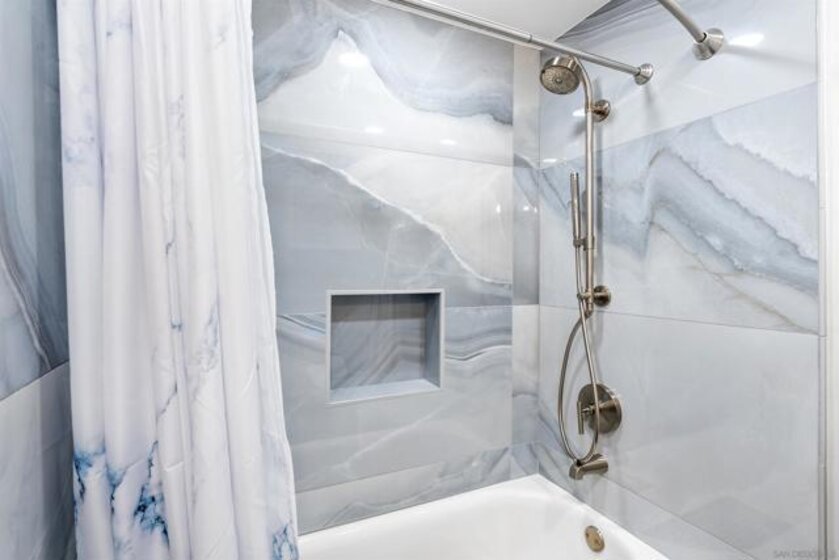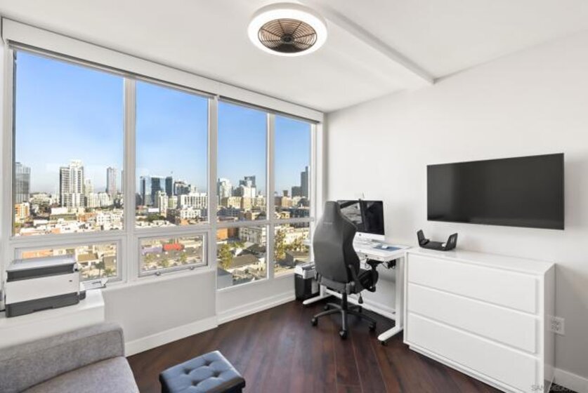 Beautifully remodeled Marina District residence with sweeping bay and city views. This spacious 2-bed, 2-bath home features two patios and two parking spaces, each with its own EV charger. Over $200,000 in 2023 upgrades include custom cabinetry with added storage, continuous flooring, updated lighting and plumbing fixtures, and premium appliances. The modern kitchen offers luxury tile finishes, a large pantry, quartz countertops, an Alexa-enabled refrigerator, and a smart oven. Additional features include a custom walk-in closet, fireplace, blackout shades, and Wi-Fi/Bluetooth color-changing ceiling lights controlled through SmartLife or SmartThings. Ideally located in the heart of the Marina District, Horizons offers easy access to Petco Park, the Gaslamp Quarter, San Diego Bay, the Marina, shopping, dining, and entertainment. Community amenities include a pool, spa, BBQ area, fitness center, conference room, club room, and 16 guest parking spaces. This residence includes two separate parking spots and a storage unit. Horizons has recently been refreshed with beautifully remodeled lobbies, upgraded hallways, and new unit doors with convenient keypad access.