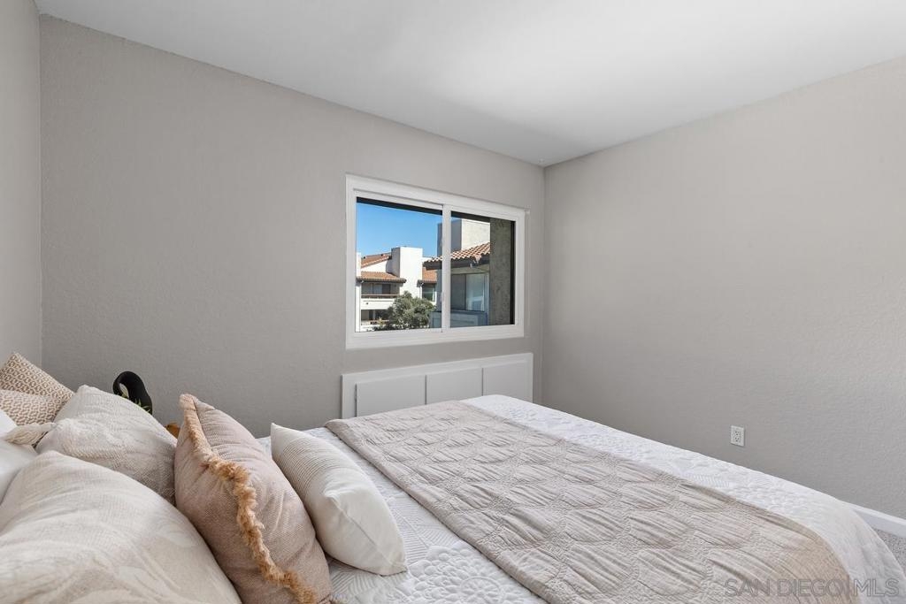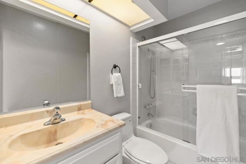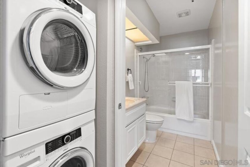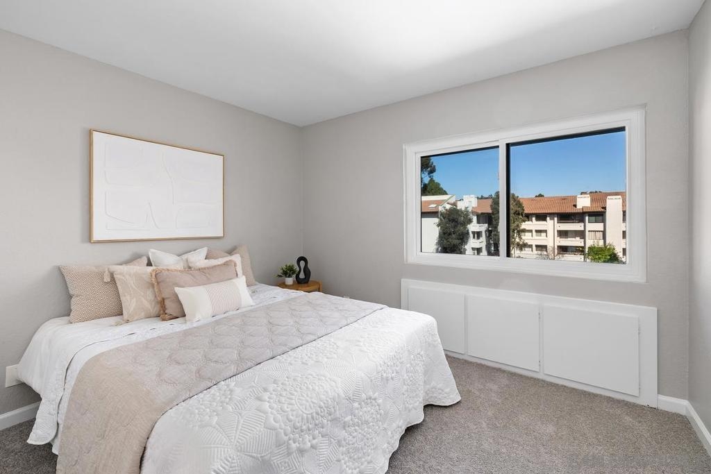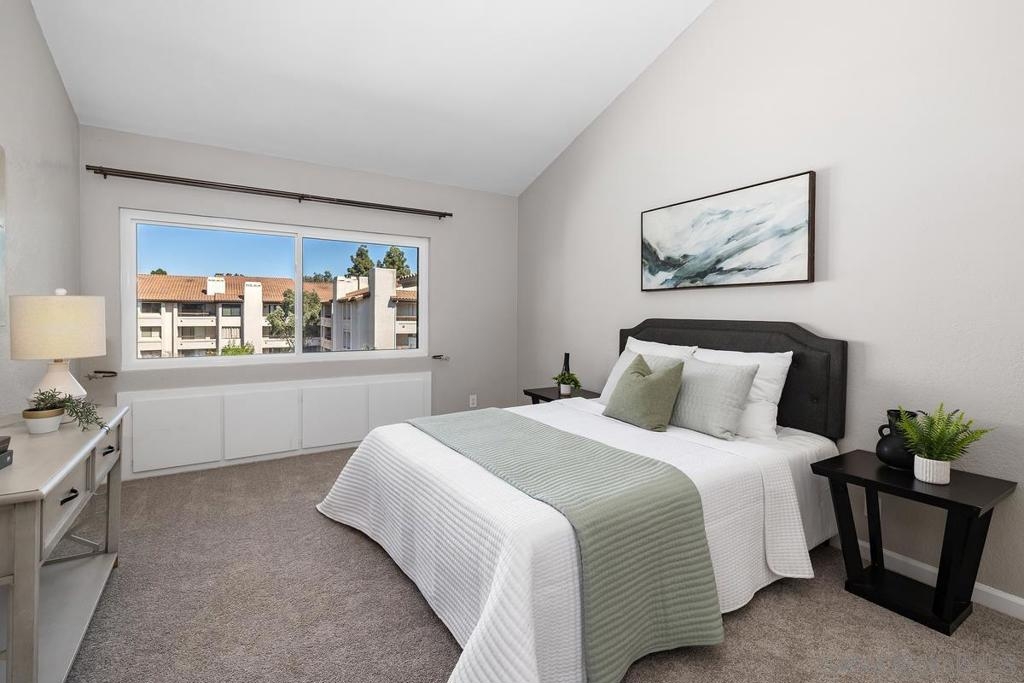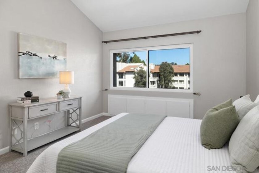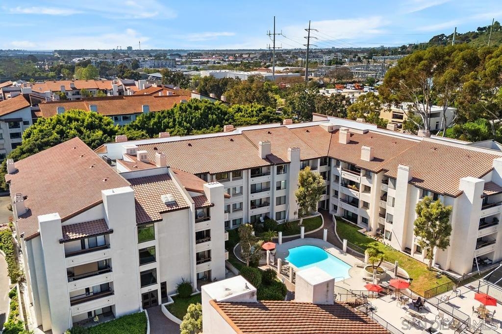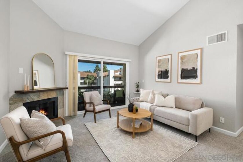 Welcome to this bright and beautifully maintained upper-level residence in the highly desirable Mission Valley. The home offers an open and airy layout enhanced by vaulted ceilings, creating an expansive, inviting feel from the moment you walk in. The main living space is anchored by a cozy fireplace, providing the perfect focal point for relaxing evenings or entertaining guests. Fresh neutral paint and crisp white baseboards throughout add a clean, modern touch, while large windows draw in abundant sunlight and frame peaceful views. Step outside to your private balcony overlooking a sparkling pool—an ideal spot for morning coffee or unwinding at the end of the day. Additional highlights include designated underground parking for added convenience and security, along with ample guest parking for visitors. The home also features a convenient in-unit stacked washer and dryer, a functional layout, and comfortable living spaces designed for everyday ease. Located in the amenity-rich and pet-friendly Presidio community, residents enjoy access to two heated pools, multiple spas, saunas, tennis and pickleball courts, a fully equipped fitness center, community garden, and lush, beautifully maintained grounds—all with 24-hour security. Centrally positioned near shopping, dining, and entertainment, and just minutes from Fashion Valley, Old Town San Diego State Historic Park, and major freeways, this home offers the perfect blend of comfort, convenience, and vibrant San Diego living.