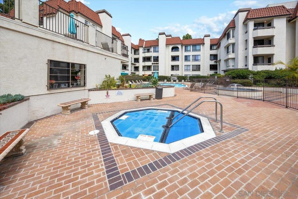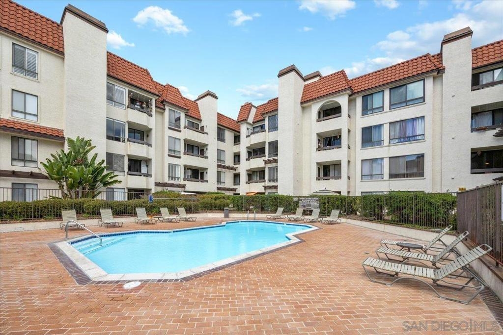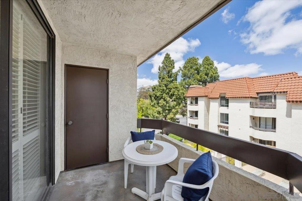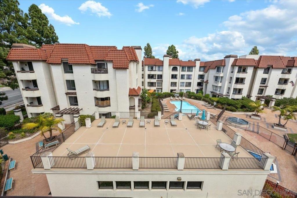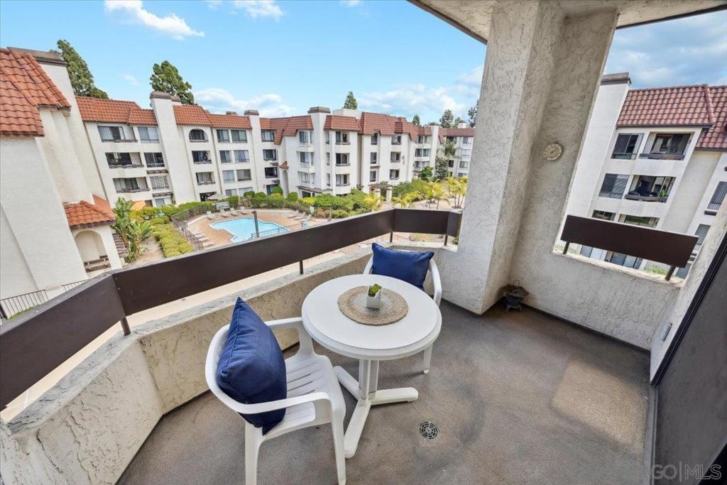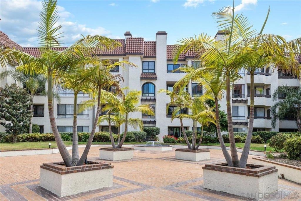 Top-floor, corner unit in The Courtyards at Mission Valley. This spacious 2 bedroom condo features a generous living area with large windows, making this unit light & bright inside and waiting for your personal touches. Private balcony with storage closet overlooks the open courtyard and pool area and is a great space for taking in the fresh air and sipping your favorite beverage. The large kitchen with recessed lighting is big enough for dining in and has plenty of cabinets for storage. The primary bedroom has a large, south-facing window and the ensuite bathroom features an updated shower, recessed lighting and walk-in closet. This unit also has central heating & A/C. Two assigned parking spots in the gated garage. The Courtyards have 2 pools, a spa/hot tub, tennis courts, on-site security and manicured grounds with fountains & gazebos. Convenient access to highways, schools, shopping, dining, entertainment, Downtown SD, beaches, Sea World and so many more amenities San Diego has to offer!