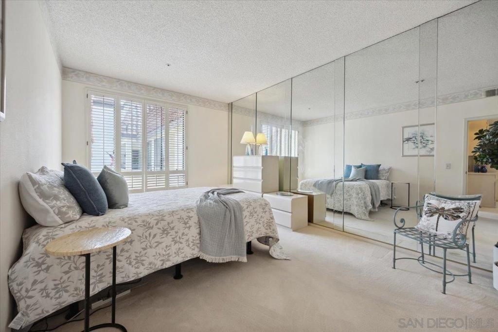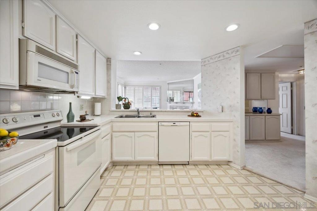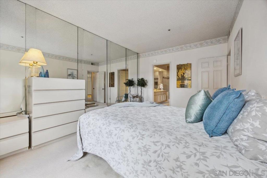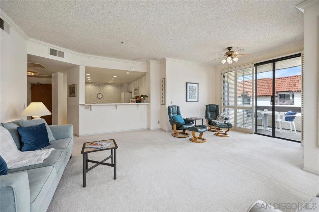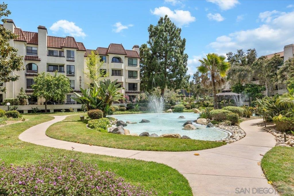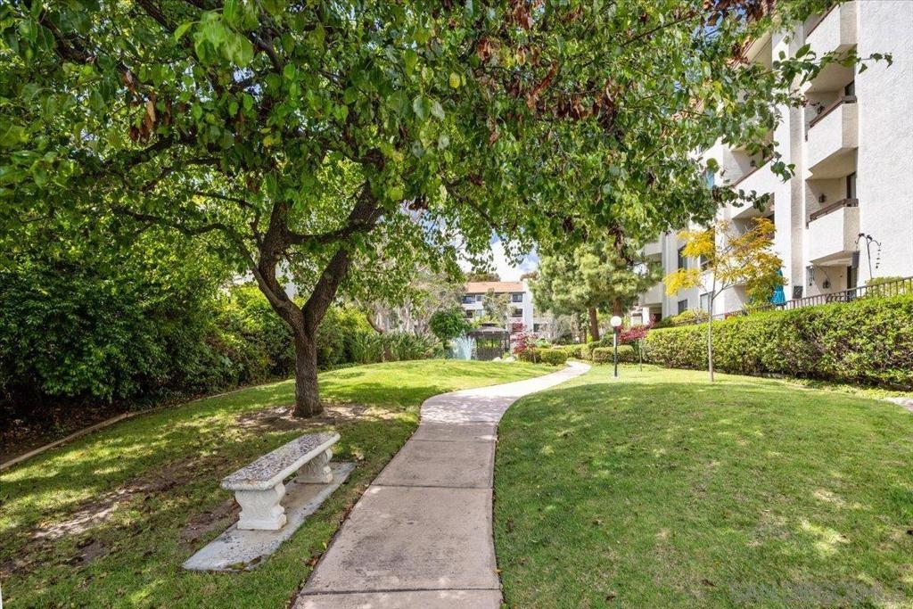 Top-floor, corner unit in The Courtyards at Mission Valley. This spacious 2 bedroom condo features a generous living area with large windows, making this unit light & bright inside and waiting for your personal touches. Private balcony with storage closet overlooks the open courtyard and pool area and is a great space for taking in the fresh air and sipping your favorite beverage. The large kitchen with recessed lighting is big enough for dining in and has plenty of cabinets for storage. The primary bedroom has a large, south-facing window and the ensuite bathroom features an updated shower, recessed lighting and walk-in closet. This unit also has central heating & A/C. Two assigned parking spots in the gated garage. The Courtyards have 2 pools, a spa/hot tub, tennis courts, on-site security and manicured grounds with fountains & gazebos. Convenient access to highways, schools, shopping, dining, entertainment, Downtown SD, beaches, Sea World and so many more amenities San Diego has to offer!
