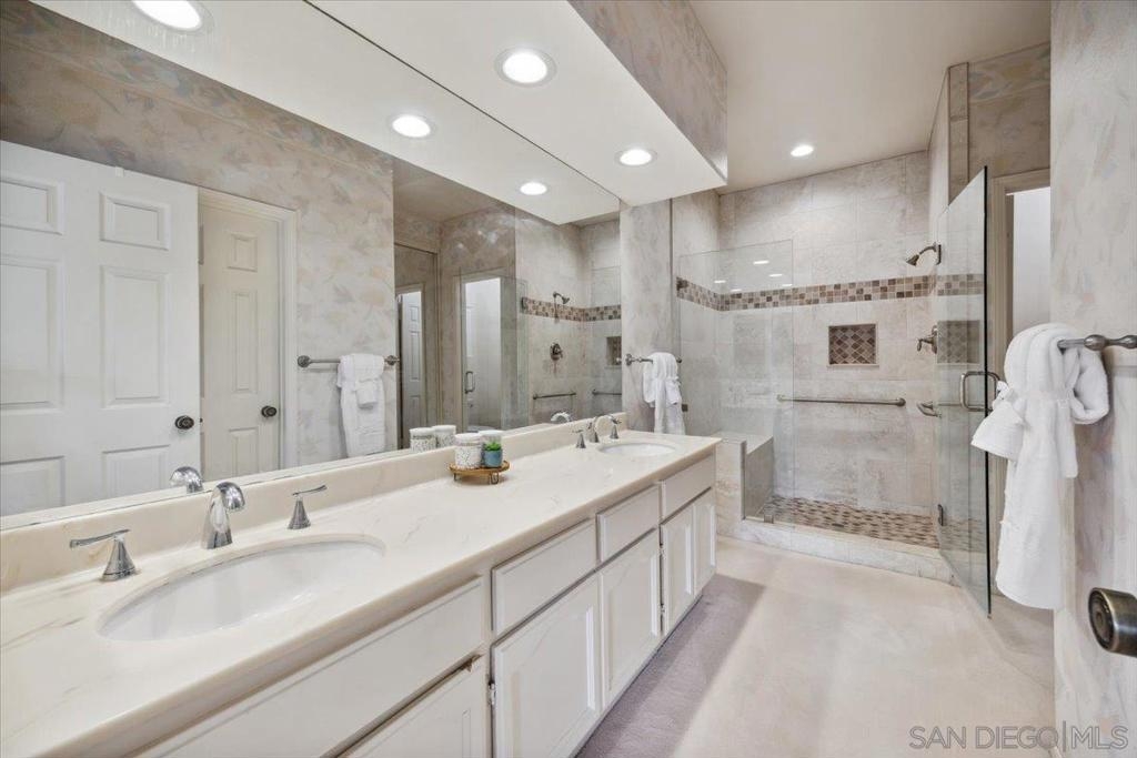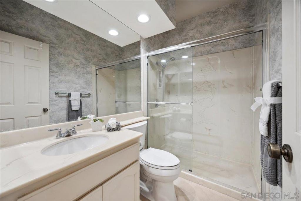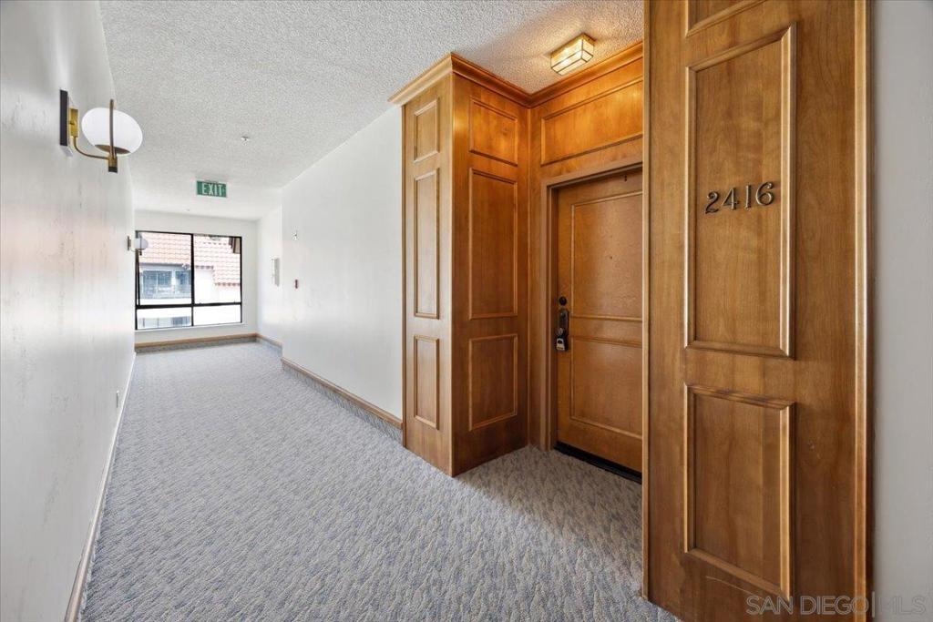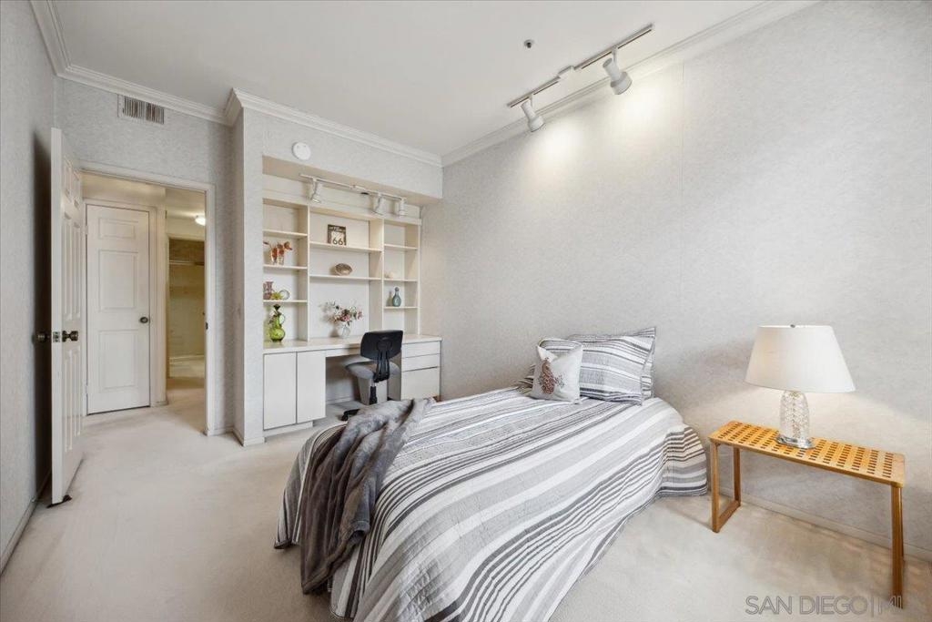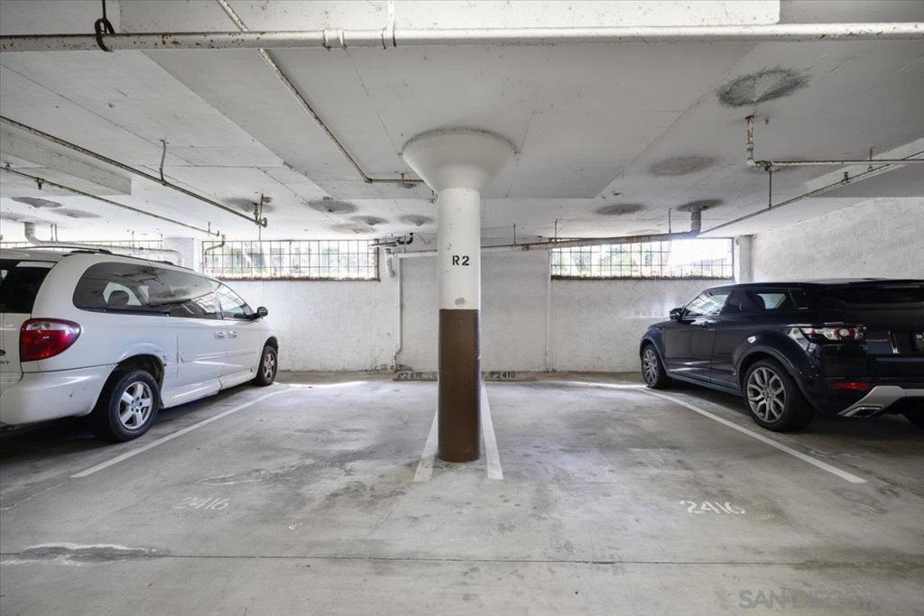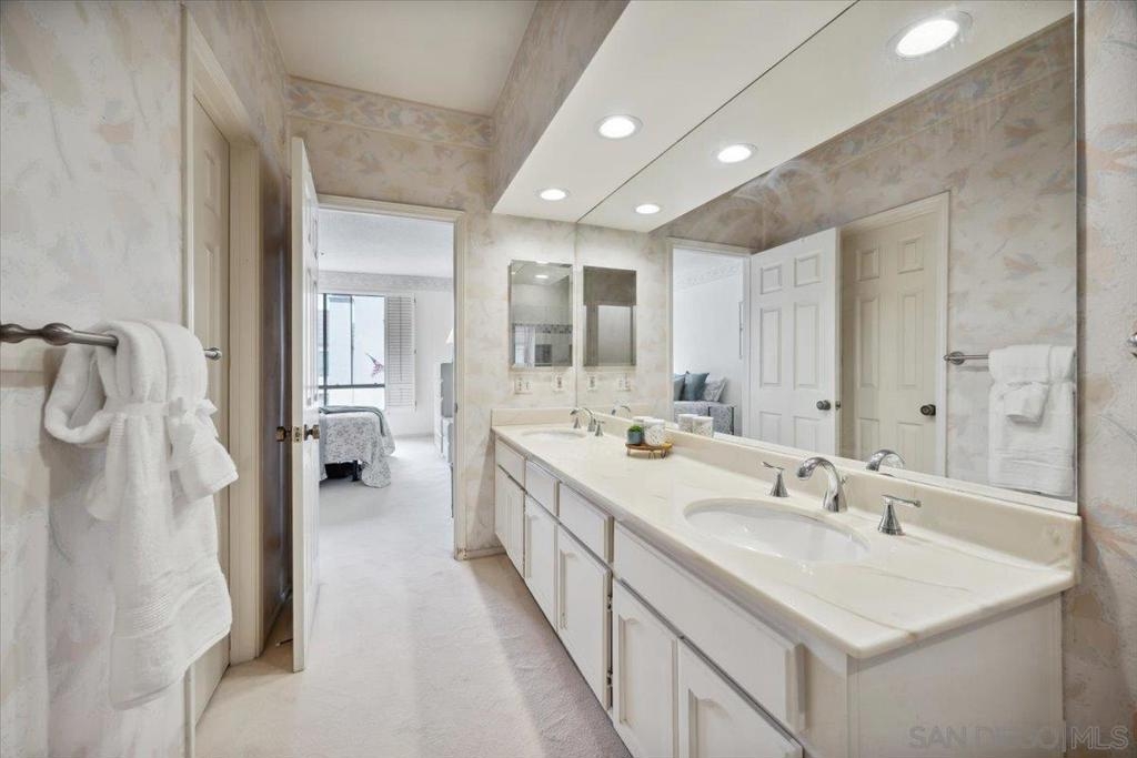 Top-floor, corner unit in The Courtyards at Mission Valley. This spacious 2 bedroom condo features a generous living area with large windows, making this unit light & bright inside and waiting for your personal touches. Private balcony with storage closet overlooks the open courtyard and pool area and is a great space for taking in the fresh air and sipping your favorite beverage. The large kitchen with recessed lighting is big enough for dining in and has plenty of cabinets for storage. The primary bedroom has a large, south-facing window and the ensuite bathroom features an updated shower, recessed lighting and walk-in closet. This unit also has central heating & A/C. Two assigned parking spots in the gated garage. The Courtyards have 2 pools, a spa/hot tub, tennis courts, on-site security and manicured grounds with fountains & gazebos. Convenient access to highways, schools, shopping, dining, entertainment, Downtown SD, beaches, Sea World and so many more amenities San Diego has to offer!
