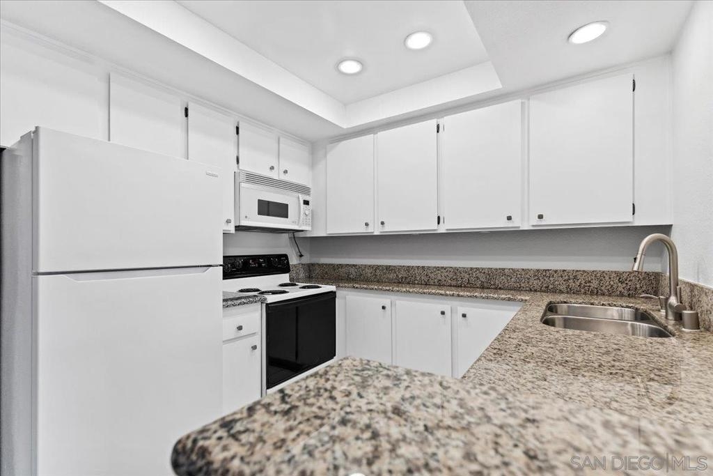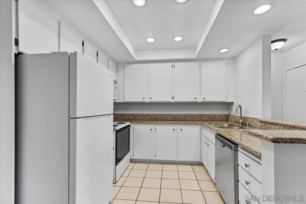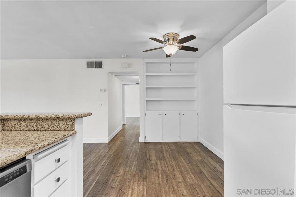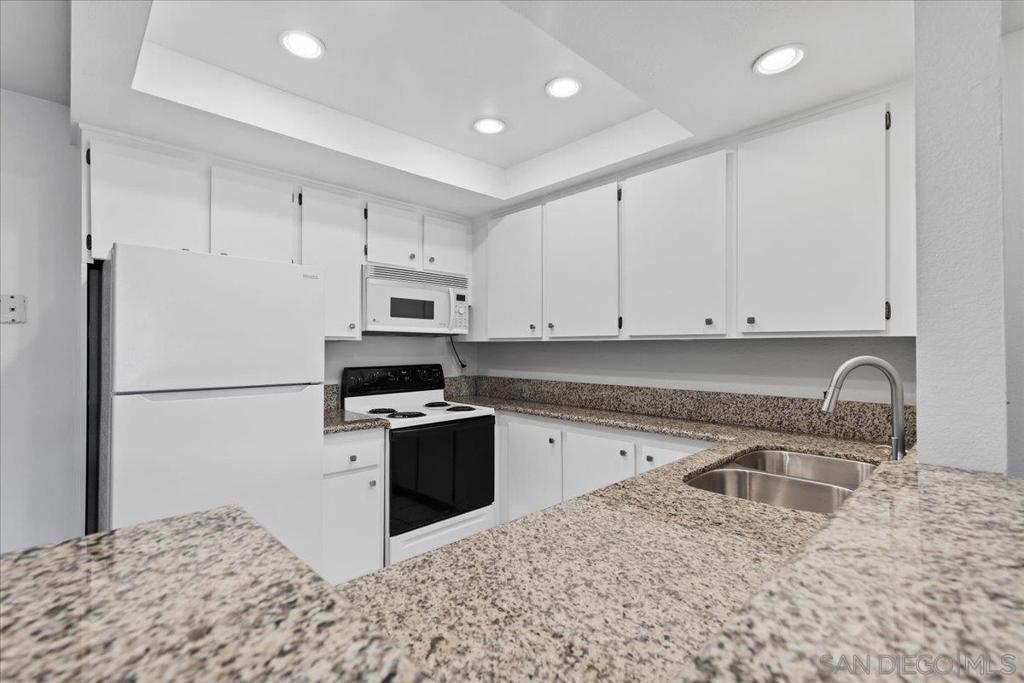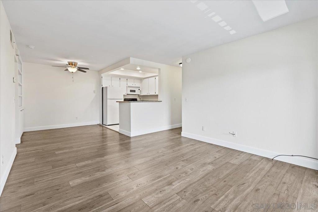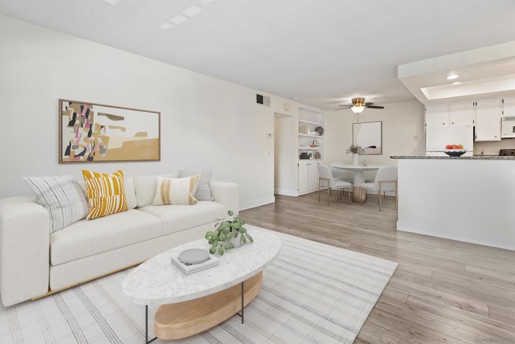 Welcome to this bright and beautifully updated 2-bedroom condo in the heart of Mission Valley located in Rancho Mission Villas. Located on the second floor, this home features central A/C and heat, fresh paint, upgraded baseboards, stylish laminate wood flooring, and modern fixtures throughout. The spacious kitchen offers plenty of counter space and cabinets, flowing into a cozy dining area with built-in shelving. Enjoy a comfortable living room that opens to a private balcony—perfect for relaxing or having your morning coffee. The two roomy bedrooms offer great flexibility, and the 1.5-bath layout includes a separate vanity area for added privacy. Rancho Mission Villas offers fantastic resort-style amenities like tennis and sport courts, two pools, a clubhouse, gym, assigned parking, guest pass, and low HOA dues. Just minutes from Snapdragon Stadium, the Trolley stop, parks, restaurants, and shops—this is San Diego living at its best. Don’t miss this one! VA approved complex!