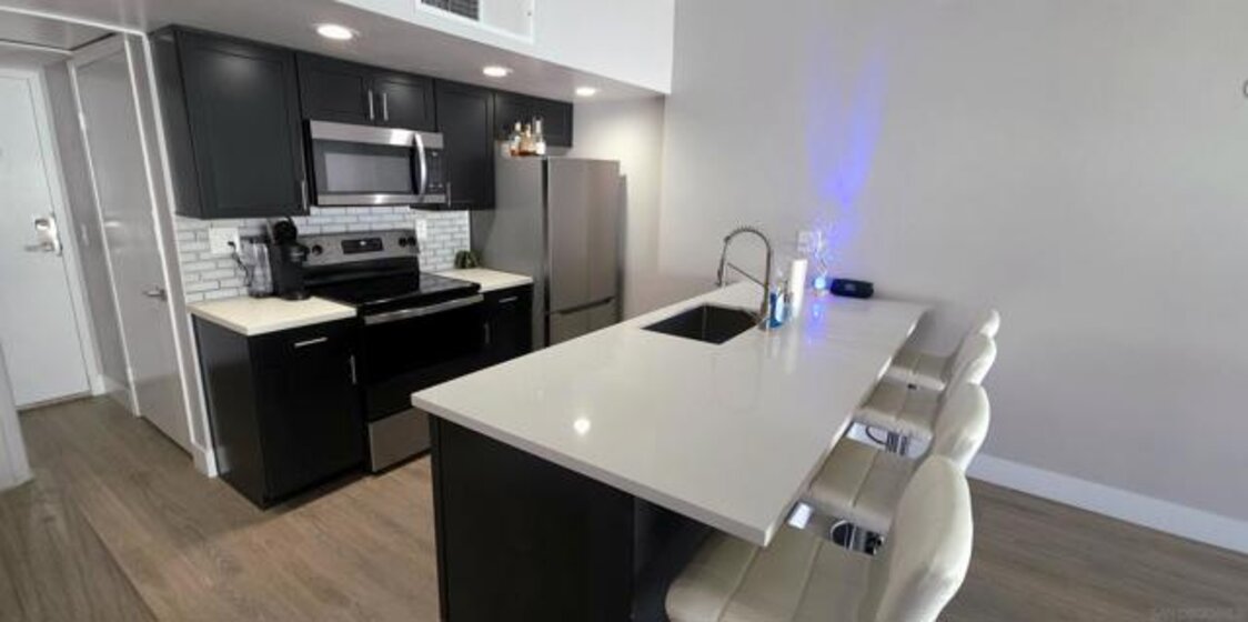 JUST LISTED – MODERN MISSION VALLEY LIVING, step into style, comfort, and convenience in this fully remodeled, turnkey condo in the heart of Mission Valley. This stunning top-floor unit was completely renovated in 2024, featuring a redesigned kitchen with brand-new appliances, modern finishes, and a clean, contemporary feel throughout. The open layout and soaring cathedral ceilings create an airy, light-filled space that feels both spacious and inviting.