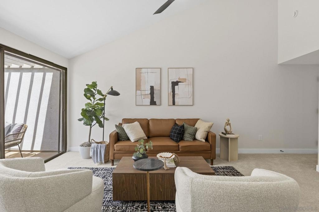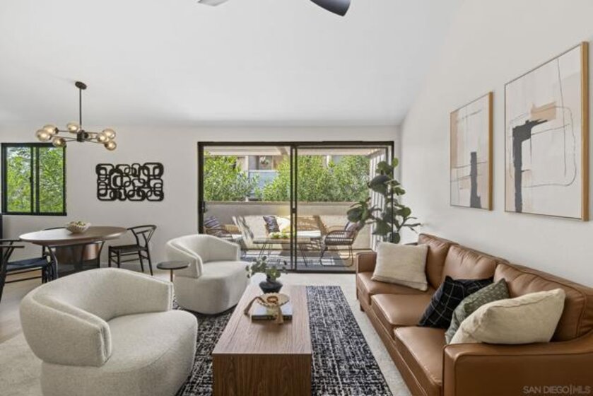 VA Approved! Beautifully remodeled upper-unit condo in the heart of University City with no neighbors above and vast vaulted ceilings throughout. This stylish, move-in ready home showcases a brand-new kitchen with white shaker cabinetry, quartz countertops, new appliances, and a modern backsplash. Thoughtful upgrades include new windows, a new sliding door, and new lighting and fixtures throughout. The bathroom has been fully refreshed with a new vanity, quartz counters, and a custom tile shower. The spacious bedroom is complemented by multiple closets for exceptional storage. Garage parking adds convenience, and the central location puts you just minutes from shopping, restaurants, major freeways, and all that University City has to offer. Enjoy the pool and of being next to restaurants and shopping.