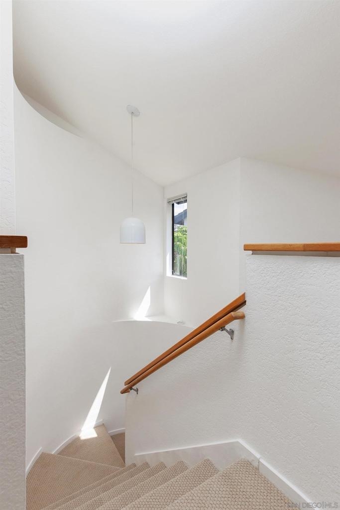 This One Sold Them All! Former Model Home in Award-Winning University Canyon East! Premier "Ridge" Setting with Panoramic Views of the University of San Diego, Tecolote Canyon & Peek Bay/Ocean! Architecturally Savvy with High Ceilings, Tons of Natural Light, Skylight, Gas Fireplace, Attached 2 Car Garage & Wrap Around Private Yard/Patio. Lives Like a Resort Villa with Open Floor Plan, Generous Primary Bedroom + 2nd Bed (Open Loft), 1.5 Baths, 1110 esf. Rarely Available Location & just steps away from the Saltwater Pool & Spa! Fantastic Location minutes to All...Fashion Valley, Sea World, Beaches, Airport & miles of Coastal Hiking Trails out your door! Immaculately Maintained with Fresh Upgrades, this Move-in Ready Home is the San Diego Dream! Move-in Ready with Fresh Paint, New Flooring, New electrical switches & outlets, New plumbing hook-ups, New Front Door & Low Maintenance Landscaping! University Canyon East was designed by renowned Santa Barbara architect, Barry Berkus! You will appreciate the "coastal canyon vibe" & low density living compared to Mission Valley! Noted architectural features include high vaulted ceilings, gemoetric & clerestory windows & thoughtful floor plans that embrace indoor/outdoor living. These are paired homes attached by just one wall. Upscale complex is being freshly painted (this home already done) & has beautiful pool & spa (saltwater) with new patio furniture! Fabulous Central Location with exciting $4Billion Riverwalk development nearby!
