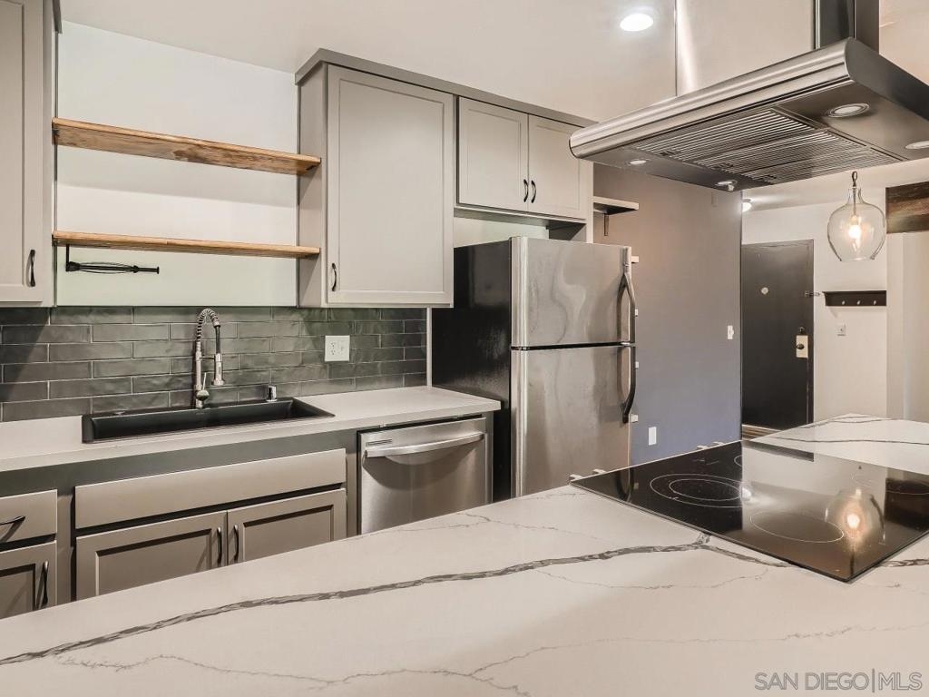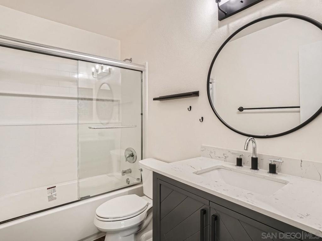 Welcome home! This move in ready, bright top floor, corner unit is beautifully upgraded with luxury vinyl flooring, quartz counter tops, completely upgraded master and guest bathrooms, newer windows, new dishwasher and much more! Community includes a pool, hot tub and gym. Live just steps away from Fashion Valley mall, multiple restaurants, the 163, 5 and the 8 freeways!