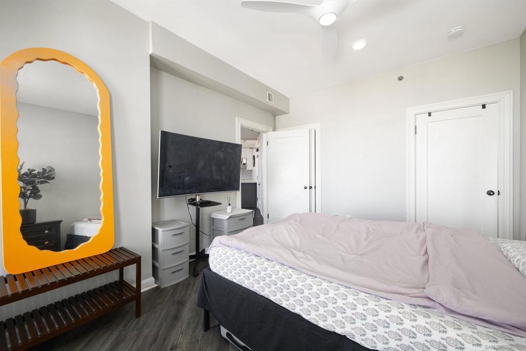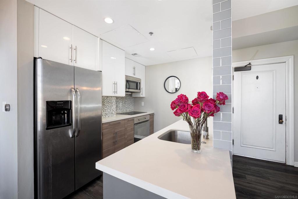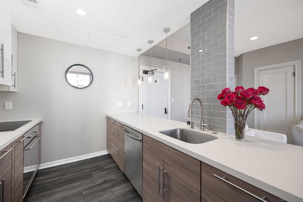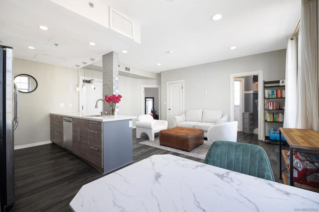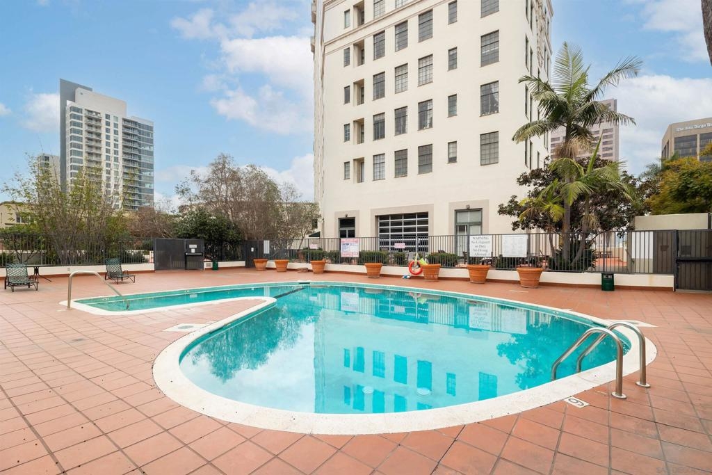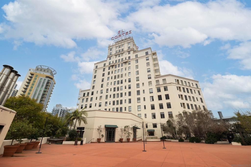 Aggressively REDUCED, Priced to Sell!!! Motivated Seller! Welcome to the Opportunity to Own in historic El Cortez. Mills Act approved - significantly reducing taxes. This beautiful spacious two-bedroom, two-bath unit features hardwood flooring throughout, and custom bathroom and kitchen tile flooring, updated, open kitchen, ceramic countertops & SS appliances and beautiful cabinetry. Access to sizeable common area terrace for relaxation, where you can enjoy BBQ’s and spectacular views of downtown. Large, historic windows allow abundant natural light. Washer and dryer on same floor, along with stackables inside unit. Includes 1 secure underground gated parking in the community garage with available electric vehicle charging space. Other amenities include stunning pool, well-maintained fitness center and on-site HOA Management. A gourmet quick mart, coffee shop, Italian cafe and yoga studio are located downstairs. This ideal location is walking distance to Balboa Park and Little Italy. Located in the heart of the city, this condo is a short distance from Petco Park, the Gaslamp Quarter, Seaport Village, with a multitude of dining, shopping, and entertainment options close by. This is a rare opportunity to own this charming condo located in one of San Diego’s most Iconic buildings, the El Cortez, known for its impressive guest list including former presidents and celebrities. Don't miss this fantastic opportunity to own in the gorgeous, historic El Cortez building!