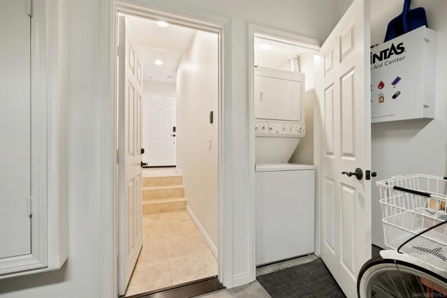 Uniquely located west of Mission Blvd and just steps from the beach access stairs in North Pacific Beach, this fully furnished 4BR/3.5BA home offers excellent outdoor spaces, peak ocean views, solar, A/C, and an attached side-by-side 2-car garage. The ground floor includes a spacious gated patio, one ensuite bedroom, and direct garage access with laundry. The second floor features a large living room with fireplace, dining area, expansive kitchen with gas cooking, walk-in pantry, breakfast bar, two decks, and a half bath. The third floor includes three bedrooms and two baths; the primary suite and one secondary bedroom enjoy peak ocean views. Built in 2007, this end-unit residence offers abundant natural light and an enhanced sense of privacy. Ideally situated near shops, restaurants, and miles of coastline—an exceptional move-in-ready beach retreat. No monthly HOA fees!