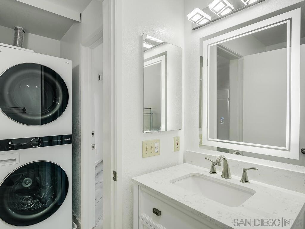 Upgraded Ground-Floor Unit with Stunning Views. Set above Mission Valley in the sought-after City Scene community, this spacious 3-bedroom, 2-bath ground-level unit offers the perfect blend of style, comfort, and convenience. With 1,271 sq ft of living space and panoramic views, this home stands out for both its location and thoughtful upgrades. The unit includes a total of three parking spaces: two in a private tandem garage and one additional non-garage space with a permit/decal. Inside, you’ll find a long list of improvements designed to enhance daily living. Luxury vinyl plank flooring adds a clean, modern touch while the interior paint creates a bright and inviting feel throughout. The kitchen has been upgraded with marble countertops and a new single-bowl stainless steel sink with a built-in cutting board—great for both cooking and entertaining. The remodeled primary bathroom features dual sink vanities and a sleek new shower enclosure, offering a private retreat at the end of the day. Additional updates include a newer water heater. Step outside to your private patio to enjoy open views and breezes, or take advantage of the resort-style amenities, including a large pool, spa, and fitness center. Perfectly situated in central San Diego, this unit offers quick access to everything from Fashion Valley Mall and Snapdragon Stadium to USD, SDSU, Mesa College, downtown, beaches, hospitals, and the airport. The City Scene community features a range of amenities including a pool, spa, fitness center, and BBQ area, with water and trash conveniently included in the HOA dues.