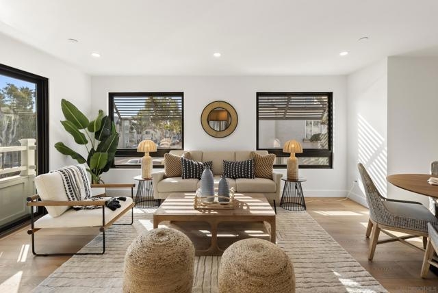 Introducing the Fantasket 3 Townhomes, a sleek and modern coastal Cape Cod–style new construction development featuring three luxury residences on the ocean side of Mission Beach. This is an exclusive opportunity, with the next door home already pending! Built by a highly reputable local builder and backed by a full builder warranty, this 4-bedroom, 4-bath home spans three thoughtfully designed levels and offers the ultimate in low-maintenance, luxury beach living. The first floor features a versatile bedroom or ideal home office with direct front patio access, a full bath, laundry closet, and a direct-access tandem two-car garage. On the second floor, enjoy an open-concept living space with a balcony, a modern kitchen with stainless steel appliances, a dining area, and a bedroom and a full bath. The third floor showcases a primary suite with a spa-inspired bathroom and private balcony, along with another spacious ensuite bedroom that also enjoys its own balcony. A private rooftop deck crowns the home, offering 360° panoramic views of Mission Beach, the Pacific Ocean, and Mission Bay—ideal for entertaining or sunset relaxation. Additional highlights include Atlantis waterproof luxury vinyl plank flooring, designer finishes, wainscoting accents, central heating and A/C splits, and in-unit laundry. Just steps from the sand and walking distance to Belmont Park, Bonita Cove, Fit Athletic Club, The Plunge, and popular dining destinations, this townhome is perfectly suited for full-time coastal living, a vacation retreat, or a premium investment property.