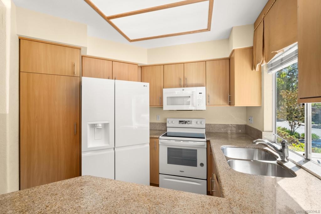 Rare chance to invest in Renaissance, desirable master-planned community in a heart of UTC, where you feel like in a small village of charming Italian island of Capri. All 6 distinctive estates connected as unique private domain, where walking trails, lush parks, contemporary gardens, small shops, cascading waterfalls remind you Mediterranean atmosphere. Westfield UTC mall, Nobel Athletic center & Park, trolley line just walking distance away. Ground floor corner unit with no stairs. First time on a market in 18 years. Newly remodeled open style ergonomic kitchen with granite countertops. Newer full size fridge, stove, microwave & modern cabinets. Parquet flooring throughout. 2 full bathrooms. Walk-in closet. Fireplace in living room. Huge patio for morning coffee. 1 car attached garage with few shelves. Laundry room with new full size Samsung washer/dryer is in hallway near garage, with extra space for storage of your valuable treasures. Just steps away from pool/jacuzzi. There are plenty of guest parking. Low HOA fees, including water, sewer, trash. Professionally cleaned and ready to move in. What are you waiting for? Some photos been digitally enchanced.