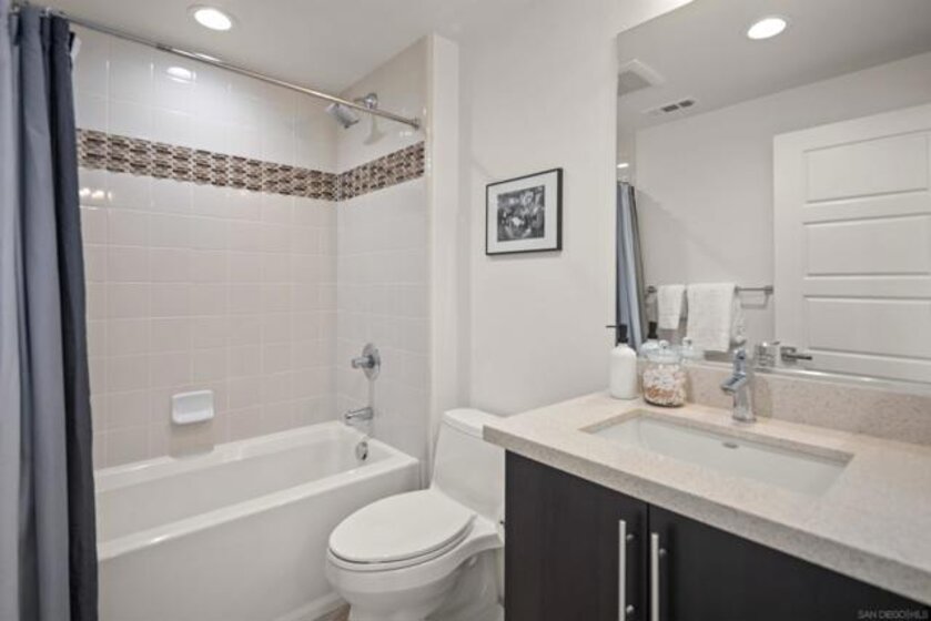 Welcome to one of Origen’s largest and most versatile homes, nestled along a scenic hillside with 2,100 sq. ft. of beautifully designed living space. This four-story residence offers the perfect blend of style, function, and flexibility with three bedrooms and a top-floor loft that can easily serve as a second living area, home office, kids’ playroom, guest space—or anything your lifestyle calls for. Step inside to discover new luxury vinyl plank flooring that adds warmth and elegance throughout the main living spaces. The entry level features a private guest bedroom with a full bathroom and access to the attached two-car garage. On the second level, the open-concept kitchen, living, and dining area is ideal for entertaining, complete with a double oven, built-in wine fridge, and direct access to a private patio with a natural gas hookup—perfect for grilling and outdoor dining. Upstairs, the spacious primary suite offers a peaceful retreat with a cozy seating area, spa-inspired bathroom, and a generous walk-in closet. A third bedroom with its own en-suite bath completes the upper floor. Don’t miss your chance to own this thoughtfully designed home in one of Mission Valley’s most desirable and fast-growing communities. Civita is one of Mission Valley’s most sought-after communities, known for its modern design, walkable layout, and unbeatable central location. Just minutes from the beach, downtown San Diego, and Snapdragon Stadium, Civita offers the perfect blend of city access and relaxed community living—all within a 15-minute drive. This vibrant neighborhood is packed with everyday conveniences and unique local spots. From LA Fitness and a neighborhood vet to casual dining, coffee shops, and boutique retail, everything you need is just steps away. At the heart of it all is Civita Park—a beautiful 14-acre space that features lush gardens, winding trails, basketball courts, amphitheaters, and open lawns for picnics or events. The nearby Civita Recreation Center adds even more with resort-style pools, a state-of-the-art gym, and outdoor gathering spaces perfect for hosting or relaxing. And there’s more to come. The upcoming development along Civita Boulevard—called The Row—will bring even more energy to the community with a vibrant lineup of restaurants, retail, and services. Whether you’re looking for convenience, connection, or simply a modern place to call home, Civita offers a lifestyle that’s hard to match in San Diego.