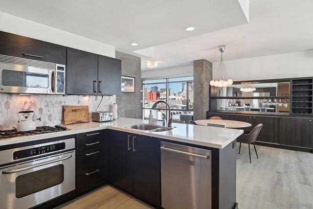 Welcome to this entertainer’s dream in the heart of downtown! A truly one-of-a-kind corner unit boasting an expansive 750 sq. ft. private patio, perfect for soaking in the morning sun, relaxing in the afternoon shade, and entertaining under the city lights. With over 1,858 sq. ft. of combined indoor/outdoor living space, this home is larger than many 2-bedroom units and offers a rare blend of luxury, space, and functionality. Step inside to find an updated kitchen and bath, soaring floor-to-ceiling windows, and high ceilings that flood the home with natural light and frame spectacular city skyline and bay views. The open floor plan includes a spacious living area with a large screen and projector setup, an extra nook ideal for a home office or den, and ample storage throughout. Additional features include upgraded stainless steel appliances, 2 parking spaces located across from one another, and a private storage room. All this, just 2 blocks from Petco Park and 3 blocks to the historic Gaslamp Quarter. Must see to appreciate!