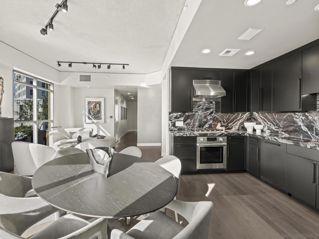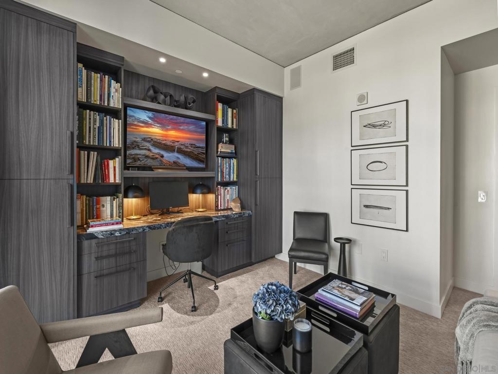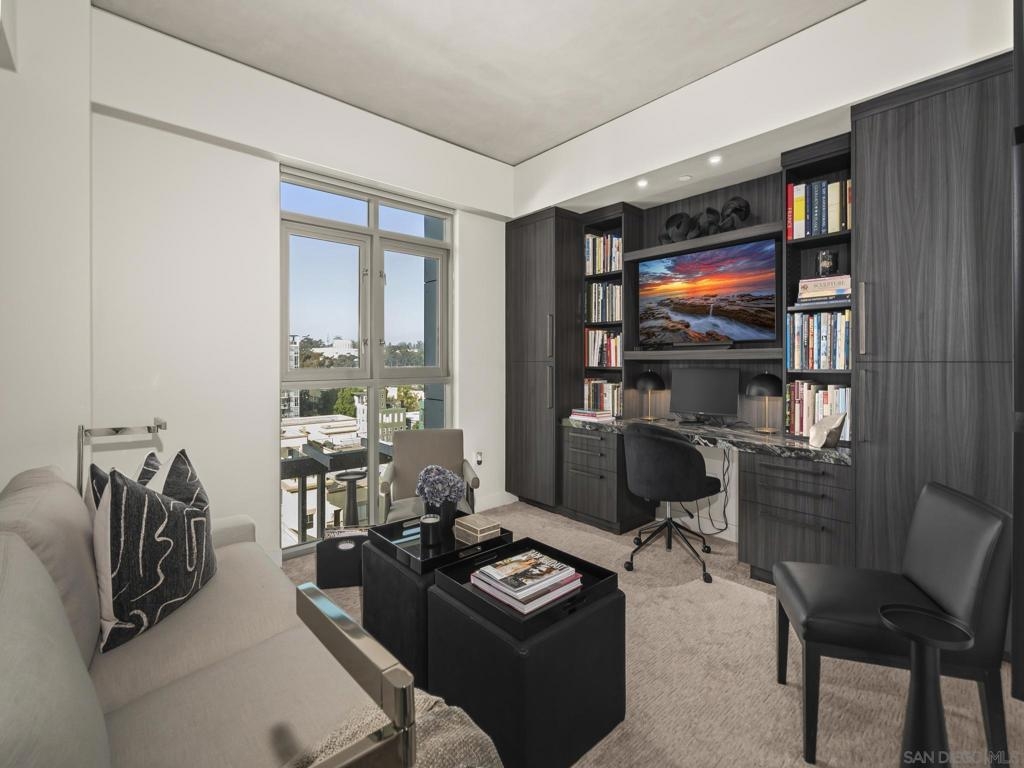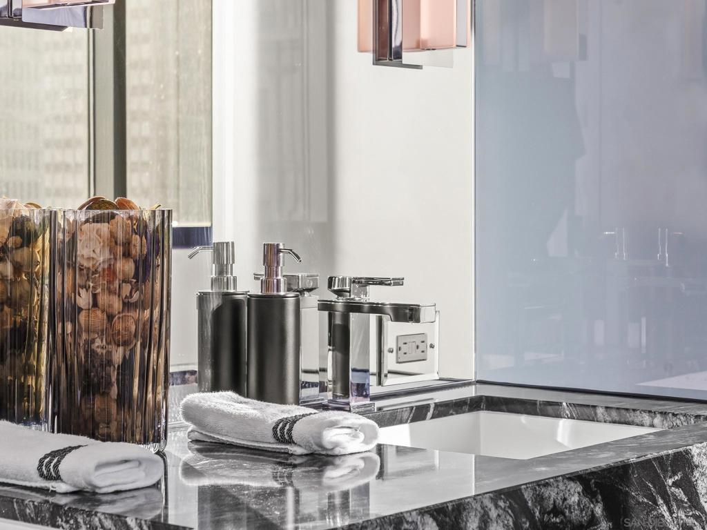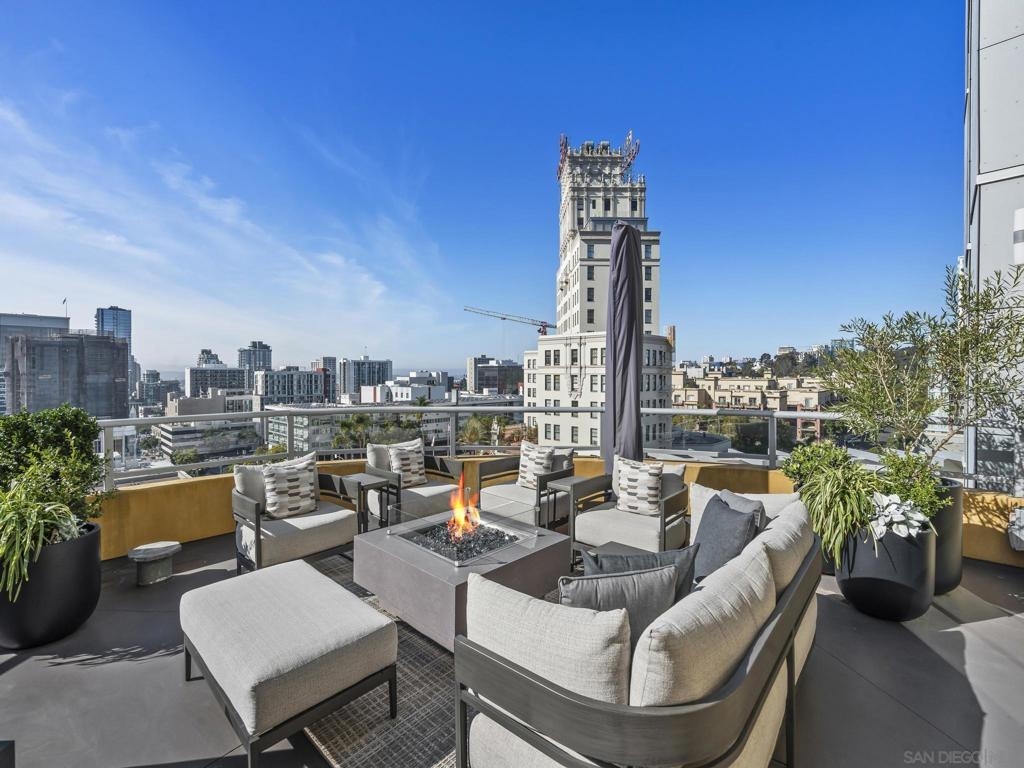 Imagine waking up in the heart of vibrant downtown, where every day is a new story waiting to unfold. This luxury residence at the Cortez Blu, an exclusive boutique building, isn't just a condo; it's a launchpad for an unparalleled urban lifestyle, perfectly situated just steps from Symphony Plaza, Balboa Park, Little Italy, and the Gaslamp. Step inside your eighth-floor sanctuary, a space totally redefined in 2024 to blend modern luxury with architectural distinction. The design choices are intentional and inspiring, featuring striking exposed concrete walls adding texture and an industrial-chic edge to high-quality finishes. You'll find bespoke elements everywhere, from custom cabinetry with granite tops and high-end appliances to sophisticated designer lighting and hidden tech shades. The commitment to unique architecture extends to the bathrooms, which feature fixtures by legendary Frank Lloyd Wright. The primary suite is a true retreat, offering picturesque city views through floor-to-ceiling windows and access to a private balcony. The en-suite bathroom indulges with a dual custom vanity, soaking tub, wet room, and walk-in closet. But the real showstopper is the over 750 sq. ft. private view terrace—a rare, almost impossible-to-duplicate outdoor space that seamlessly transforms your living experience. It's your personal stage for entertaining guests or simply soaking in continual, breathtaking city vistas. This turnkey property, complete with secure parking and storage, offers a lifestyle that is both sophisticated and thrilling in the pulsating center of the city. One must experience this residence to understand the feel and tranquility it brings. Enjoy the privacy of only 2 neighbors on your floor with only a small, shared wall. Perched atop the serene Cortez Hill, Cortez Blu offers the idyllic location in Downtown San Diego, coupling urban convenience with neighborhood charm. This location affords quick access to freeways, putting the entire city in easy reach, but near all the verve and excitement of the cultural and brimming nightlife, sporting events, and social happenings of the downtown area.