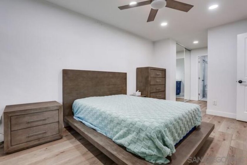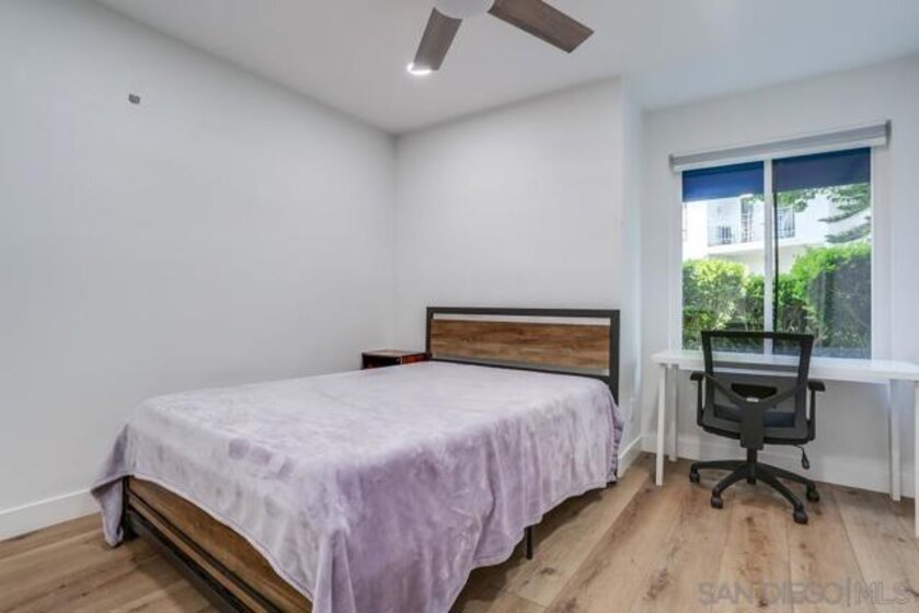 Discover modern elegance at 8308 Regents Rd #1F, a beautifully remodeled 2-bedroom, 2-bathroom condo in San Diego. This 1,054 sq ft home was upgraded in 2023 offering a blend of contemporary style and comfort. Features include a gourmet kitchen with new stainless steel appliances, luxury vinyl plank flooring, and remodeled bathrooms with custom tile designs and quartz countertops. Enjoy new sliding glass doors and windows that enhance natural light, with electric wall heaters for year-round comfort. The community provides two swimming pools, a Jacuzzi, and a racquetball court surrounded by mature trees. Assigned parking space #10 and 11 is included. Ideally located close to UCSD, shopping, restaurants, and services.