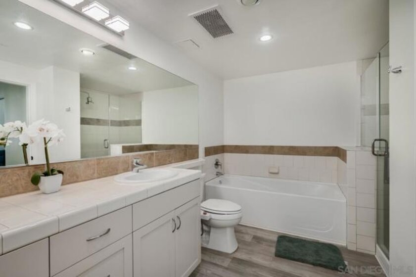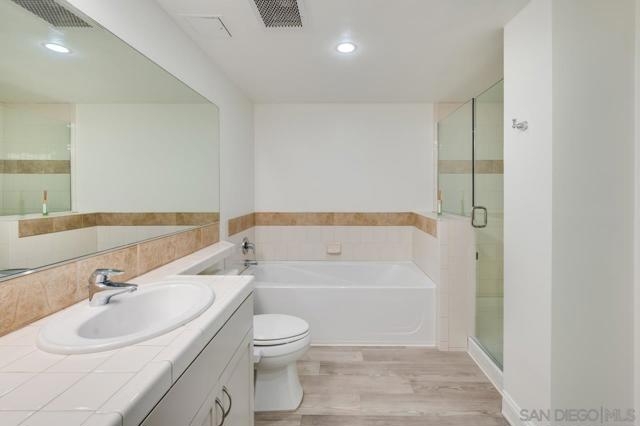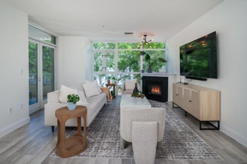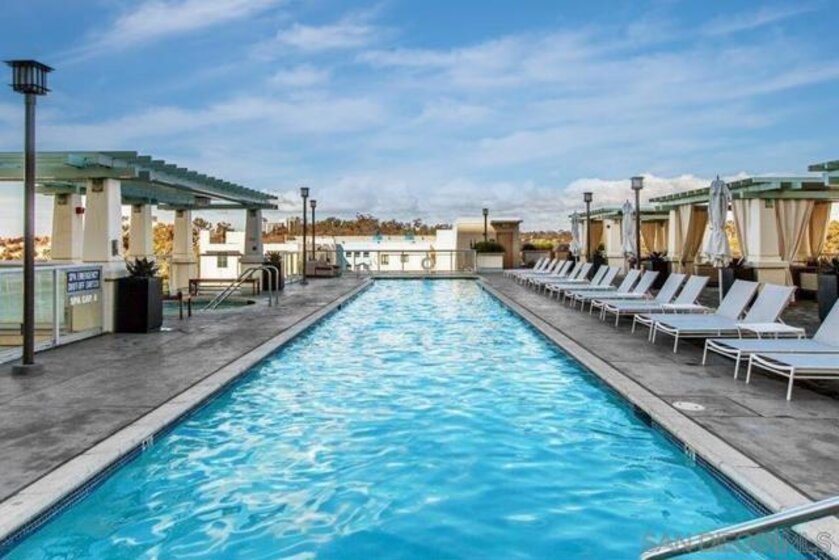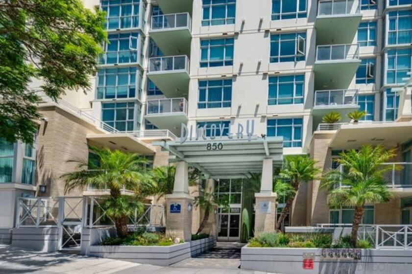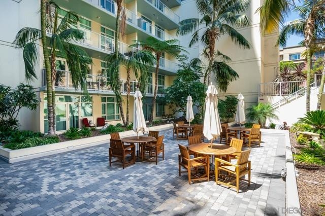Welcome to The Discovery at Cortez Hill, your urban sanctuary in the heart of the city. Enjoy an array of upscale amenities including a rooftop pool and spa, fitness center, social lounge, and 24-hour concierge service. This spacious two-story walk-up offers 1,610 square feet of living space, complete with a balcony and private patio, and is the lowest-priced unit per square foot in the entire building. A rare find, this residence features two separate entrances: one with direct street access and the other from the building’s second floor. Additional highlights include side-by-side parking, a deeded storage unit, and abundant closet space in both bedrooms and the versatile flex area. The main living area showcases floor-to-ceiling windows, a large balcony, and an ambient fireplace, creating an inviting atmosphere. The kitchen is outfitted with stainless steel appliances, granite countertops, under-cabinet lighting, and luxury vinyl plank flooring throughout. The split-level layout offers ideal separation for guests or privacy. The lower level features the primary suite and a flex space perfect for a home office or den, with direct patio access to the street. Parking spaces are 189 and 241 located on P1. The storage unit is L147 located on P1. Lockbox is on the left side when you enter the closet behind the door(serial 2400250).