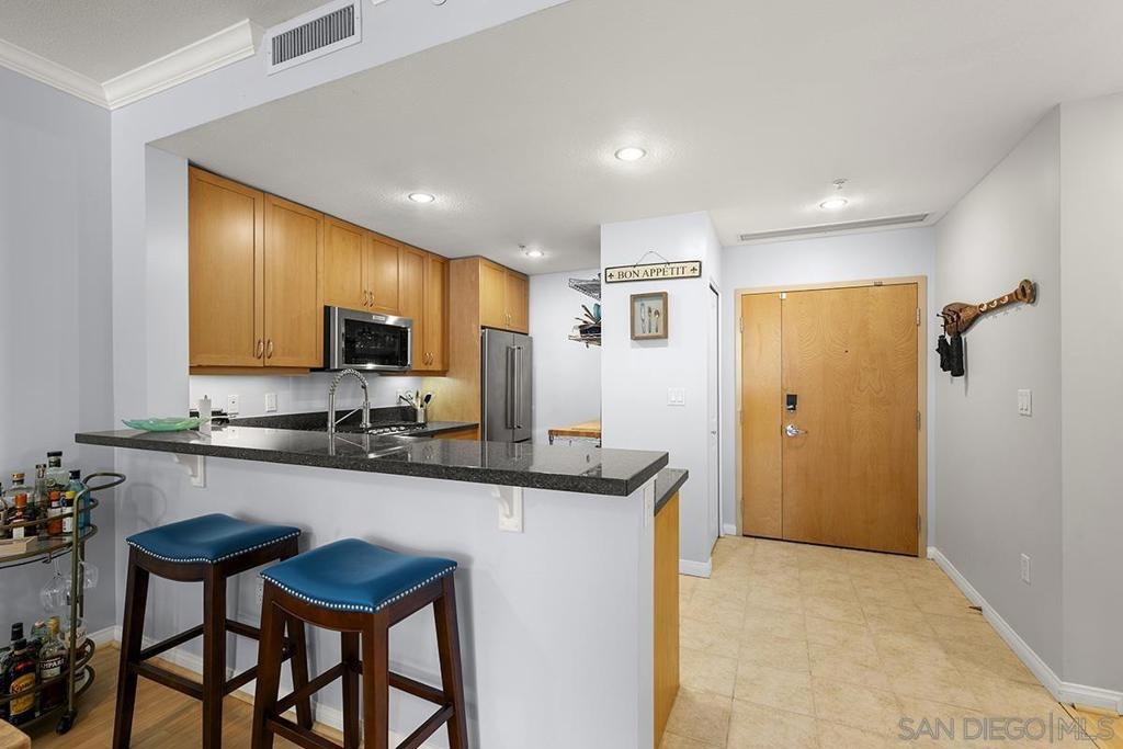 This gorgeous ground-level 2 bedroom, 2 bath residence at Discovery offers the perfect balance of being close to the action, yet removed from the noise and hustle-bustle. Beautifully maintained and truly move-in ready, it stands apart with a private street entrance and an oversized enclosed terrace, ideal for relaxing, entertaining, or letting furry companions enjoy the outdoors. Located in Cortez Hill, one of Downtown San Diego’s most charming and peaceful neighborhoods, you’ll enjoy a quieter, community-oriented setting while remaining close to everything the city has to offer. Inside, features include a warming fireplace, laminate wood flooring, fresh paint, and crown molding. The kitchen is equipped with upgraded KitchenAid stainless appliances, wine fridge, recessed lighting, ample cabinetry, kitchen organization station with open shelving, and an eat-at bar. The primary suite offers an organized walk-in closet and ensuite bath. Additional highlights include interior building access, a private storage space down the hall, and the convenience of street-level living. Discover why Discovery and Cortez Hill are among Downtown San Diego’s best-kept secrets. Discovery offers resort-style living in one of Downtown San Diego’s most charming and established neighborhoods, Cortez Hill! Residents enjoy secure underground parking, 24-hour concierge service, an elegant lobby, and thoughtfully designed shared spaces including the lush 2nd-floor Fern Grotto Garden and a stylish social lounge. The business center is equipped with commercial-grade office tools, and the 10th-floor rooftop deck features a heated lap pool, cabanas, spa, BBQ grills, and panoramic city views. A top-tier fitness center includes a sauna and steam room for full wellness access. Just steps away are local favorites like Tweet Street Park and with Little Italy and Balboa Park within walking distance. Plus, enjoy quick freeway access to I-5 and Hwy 163 from this peaceful urban retreat.