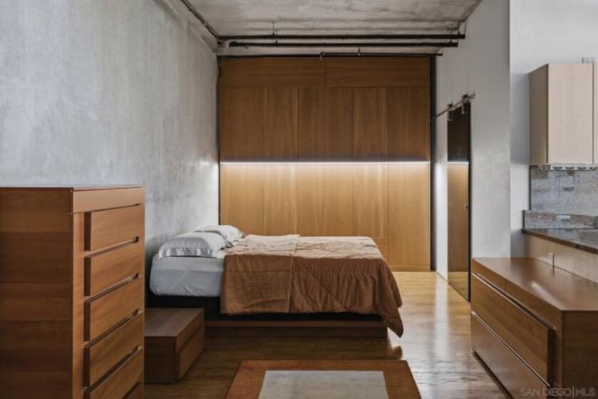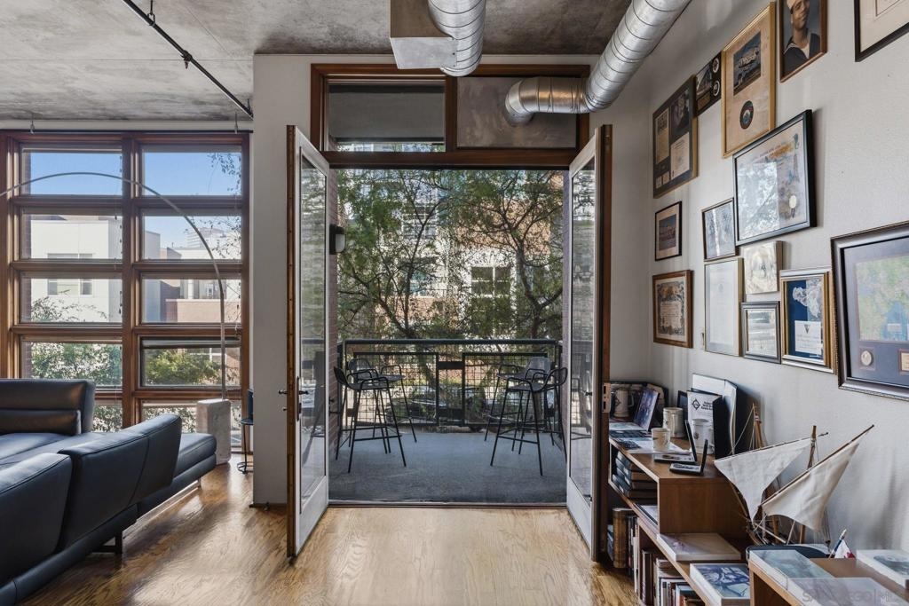 Experience elevated loft living at Parkloft, one of Downtown San Diego’s most coveted addresses in the vibrant Ballpark District. This spacious residence features soaring 10-foot ceilings, exposed ductwork, solid oak flooring and an open-concept design which captures the essence of sophisticated urban living. The expansive floor to ceiling Pella windows open up to north-facing city views and the private terrace is equipped with gas hookups, perfect for alfresco dining and entertaining. The primary retreat offers a tranquil escape, featuring an attached spa-inspired bathroom with award-winning design showcased in SD Design Magazine. Parkloft residents enjoy a well appointed fitness center; 24-hour concierge and security services; on-site management ensuring exceptional care and convenience; and a serene landscaped courtyard with ambient fire features, BBQ’s and a club house with a kitchenette which opens up to a large outdoor dining table and sets the stage for effortless outdoor entertaining. Developed by Douglas Wilson Companies (developer of Symphony Towers), Parkloft embodies the timeless sophistication of Manhattan-style loft living, with a seamless balance of historic brick craftsmanship and modern elegance. Crafted of poured-in-place concrete and timeless brick, this 11-story boutique building features a limited collection of 120 residences. The Ballpark District spans 22 blocks surrounding Petco Park, where the Padres-affiliated Ballpark District Community Partnership provides daily clean-up services to maintain the area.