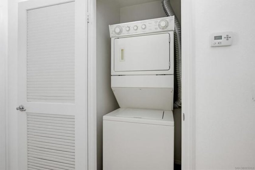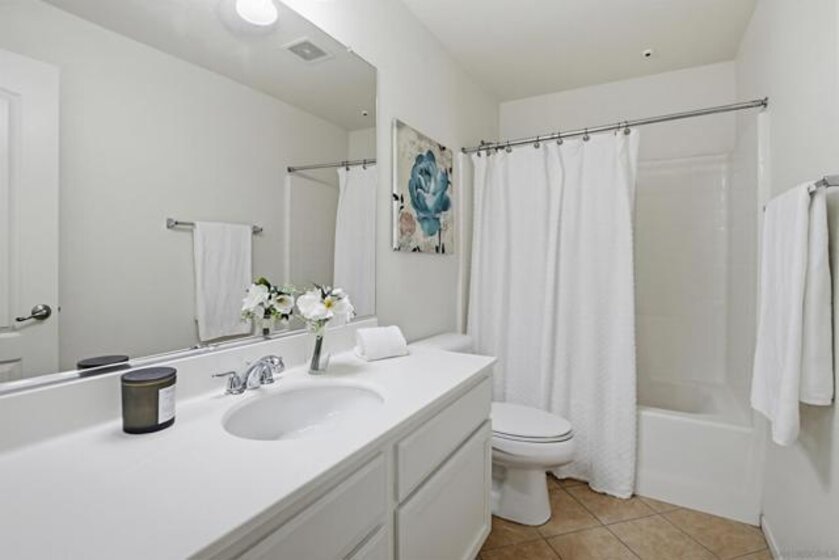 Welcome home to Tribeca. A gorgeous community in the heart of Kearny Mesa. Walk into a great room - open layout. It has a modern kitchen with a dine at counter, that is open to the dining and living room. The space is great for cozy nights at home or entertaining friends. Master bedroom is generously sized with a walk in closet. Stacked laundry closet right off the kitchen. It has a tandem 2 car garage downstairs, with direct access. Enjoy the community pool and spa just in time for Summer. Top it off it's centrally located, get to most of SD within 15 min. It's close to the frwy, great dining and shopping.