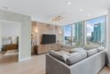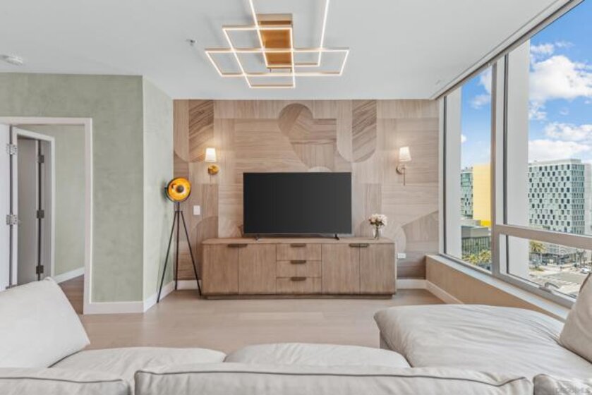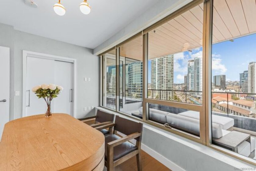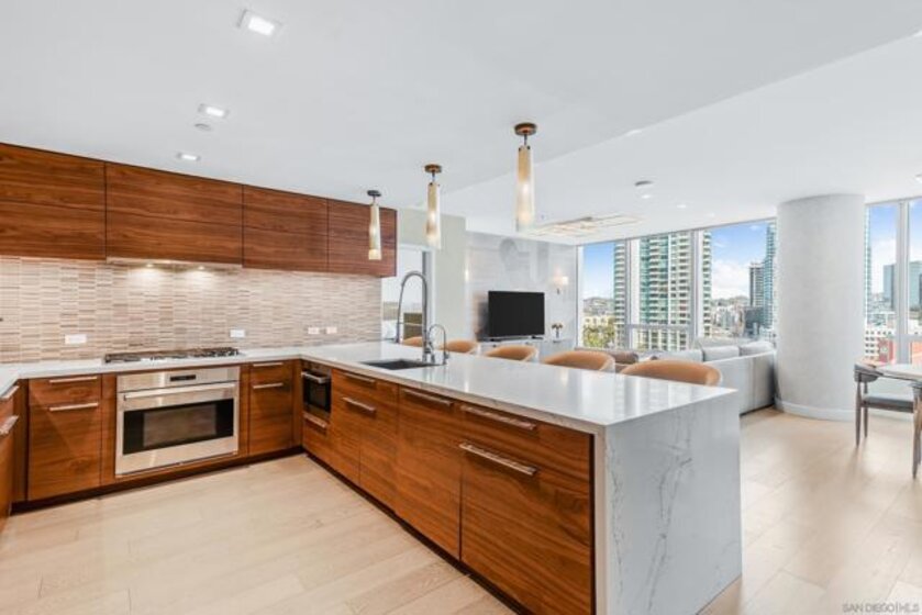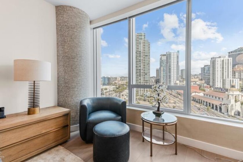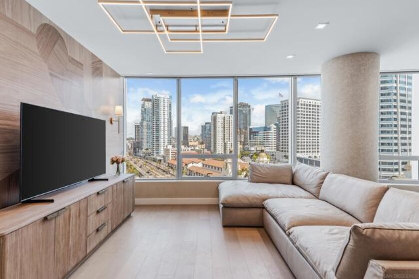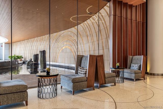 Experience the ultimate in luxury high-rise living at Pacific Gate, San Diego’s iconic waterfront address. Residence 1106 is a stunning 2-bedroom, 2-bath home spanning 1,390 sq. ft., offering an elegant blend of modern design and urban comfort. Expansive glass walls fill the home with natural light, showcasing dynamic city views framed by the downtown skyline. The open-concept living space features sophisticated upgrades like new wall coverings, fresh paint, and stylish lighting enhancements for added comfort and style. A split-bedroom layout ensures privacy and flexibility, while the private covered terrace extends your living area outdoors. The generous primary suite offers an elegant walk-in closet by California Closet Systems and a spa-inspired bath with heated floors, a walk-in shower, a soaking tub, and an anti-fog electric mirror with an integrated 10” TV screen. Automated blinds and a Smart Home system with climate control add convenience throughout the residence. The second bedroom offers flexibility as a home office or guest retreat. Residents enjoy unparalleled resort-style amenities including a private yacht share, luxury car fleet, chef concierge, guest suite, state-of-the-art fitness center with sauna and steam room, residents’ lounge, and an on-site restaurant led by a celebrity chef. Ideally located just steps from the bay, this residence is moments from Seaport Village, the Rady Shell, the new RaDD development, and San Diego’s finest dining, shopping, and entertainment. The first all-glass Super Prime residential tower in San Diego offers an unprecedented waterfront lifestyle with sky-high amenities and picture-postcard views. Directly overlooking the waterfront, the 41-story tower contains an exclusive offering of homes designed by Hirsch Bedner Associates. Renowned New York-based architectural firm Kohn Pedersen Fox (KPF) created a landmark that reimaged the San Diego skyline. The custom-engineered glass walls dynamically reflect the hues of the sky and the Pacific Ocean. Pacific Gate has evolved the San Diego skyline and represents the future of the city. The building is comprised of two-nested curved glass towers that rise as a single column from a three-story ground floor retail podium on the north and west sides of the tower. Because of the building’s curves and exterior glass, Pacific Gate offers a striking viewing experience from every vantage point. Residents arrive home to a beautifully landscaped motor court with a private luxury car fleet, which leads to a double-height lobby with a 24-hour concierge and porter services. Two levels of amenities boast a residents lounge ideal for events and everyday use, the fitness center contains an extensive range of state-of-the-art equipment. Adjacent to the fitness center is the steam and sauna retreats that open up to the fourth-floor pool terrace fitted with poolside cabanas and glass surround.