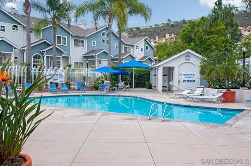 Sunny, bright, end-unit Scripps Ranch townhome with the best location in the complex. Features include upgraded cabinetry, stainless steel appliances, flooring, bathroom sinks and cabinets and more. The primary suite with private balcony and walk-in closet and a second bedroom with an en-suite bedroom are located upstairs. The third bedroom and full bathroom are downstairs. Enjoy direct-access from the large two-car garage. Re-sort style community amenities and HOA includes water and trash. Close to top-rated schools, dinning and shopping.