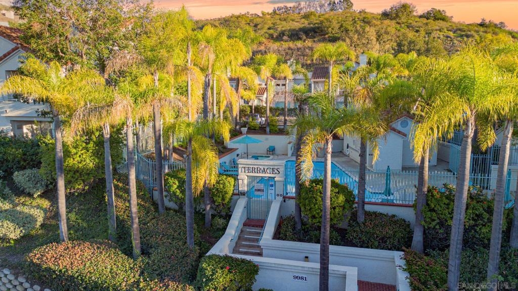Discover this beautiful 2-bedroom, 2-bath first floor end-unit featuring an open floor plan, breathtaking views, stunning sunsets with a detached garage in the heart of Scripps Ranch. The spacious living area flows seamlessly into a well-appointed kitchen with a cozy fireplace, creating an ideal space for everyday living. The home features dual primary suites, tasteful neutral décor, in-unit laundry, and a private one-car garage with ample storage. Designed with ADA built-ins, ideal for accessibility needs and easily removable if desired. Experience resort-style, 5-star living at Scripps Terraces, a highly desirable community close to parks, shopping, dining, hiking trails, and top-rated schools. Conveniently located near Miramar, Sorrento Valley, Qualcomm, UCSD, Alliant University, and with easy freeway access. This is a rare opportunity you won’t want to miss—imagine yourself enjoying sunset views from your living room or patio in this exceptional home.